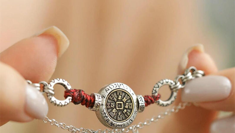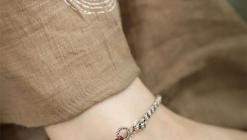红绳编织银珠手链平安喜乐纽扣银坨坨新中式本命年手饰女民族风