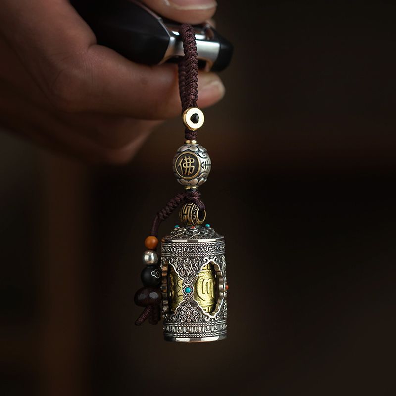 純銀ガウ箱のキーホルダーは回転して朱砂を開けることができます。