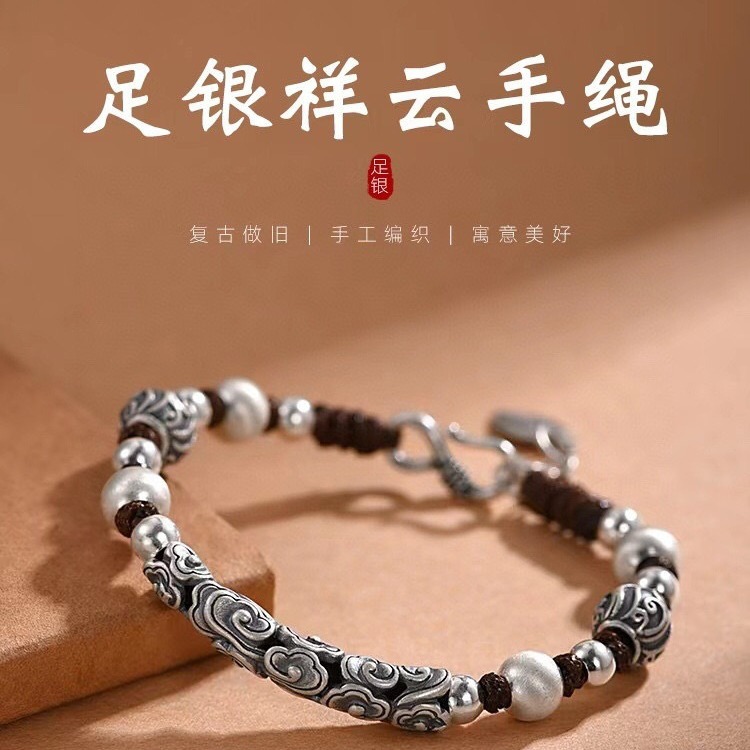 逸品999純銀祥雲ブレスレット男性女性モデル潮カップル民族風男性手綱手串七夕プレゼント