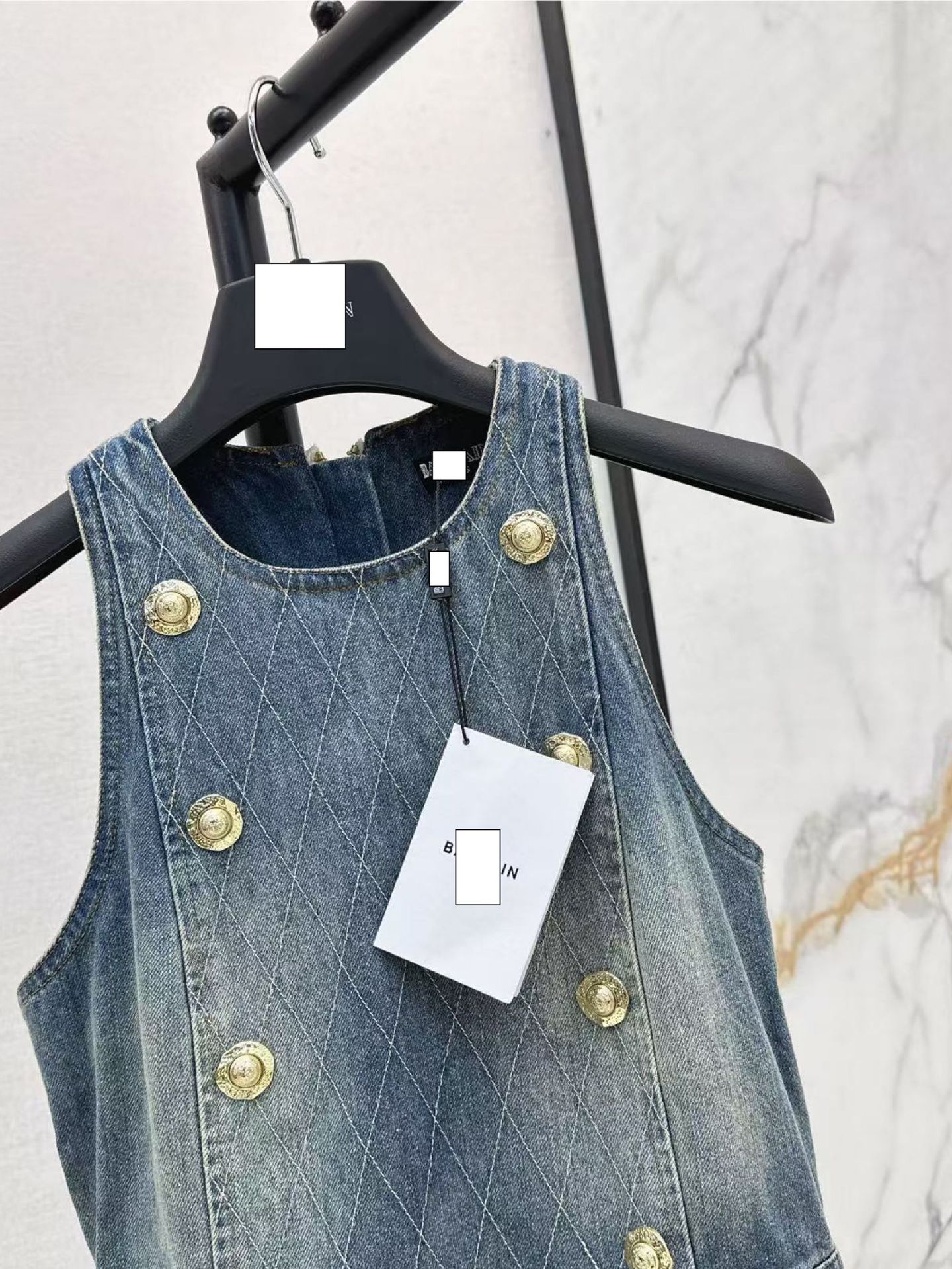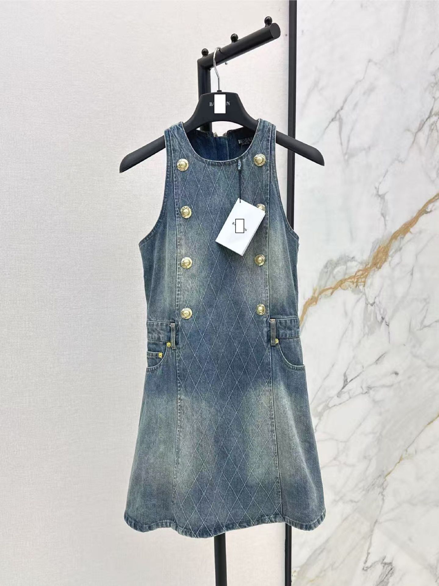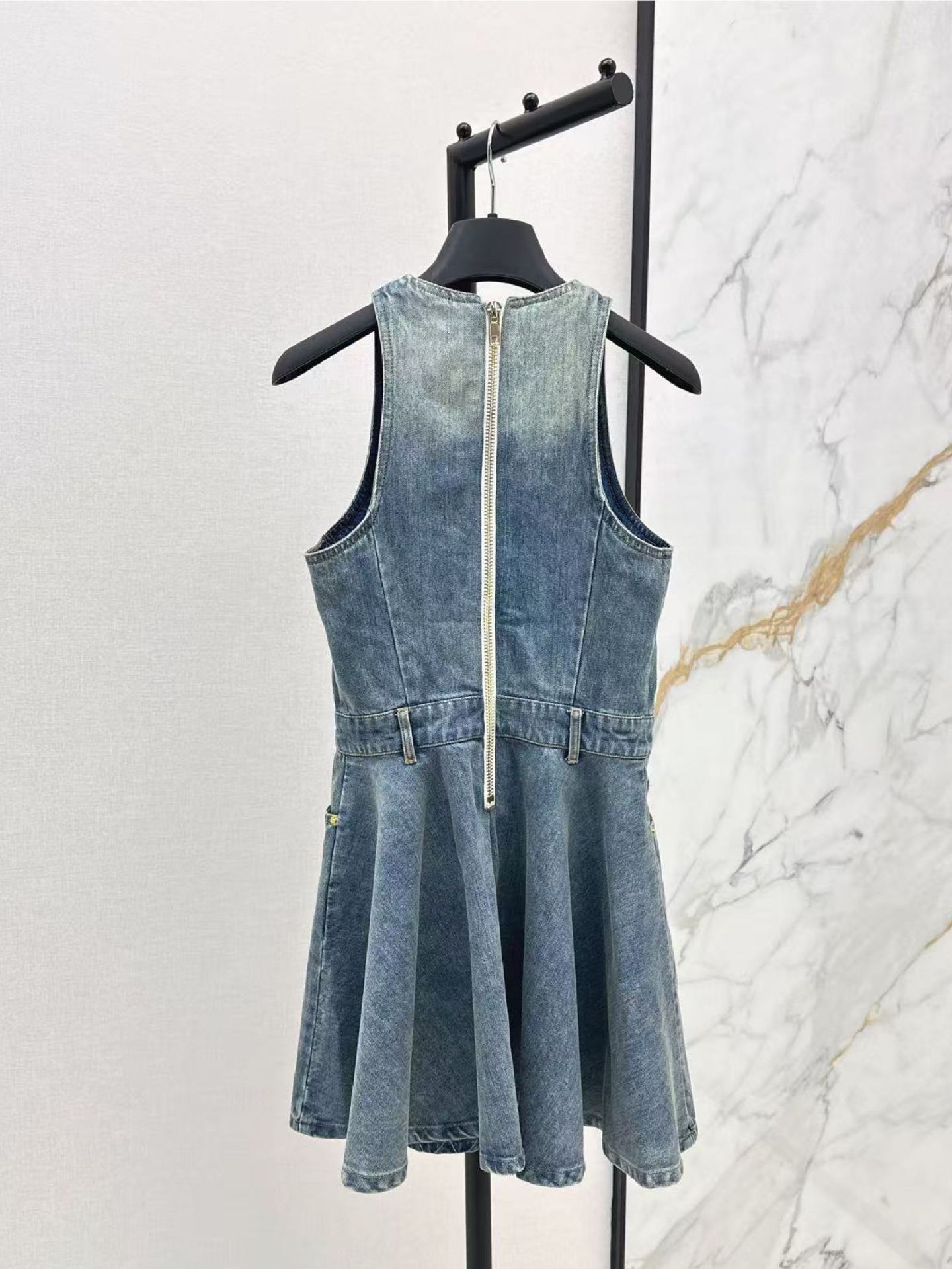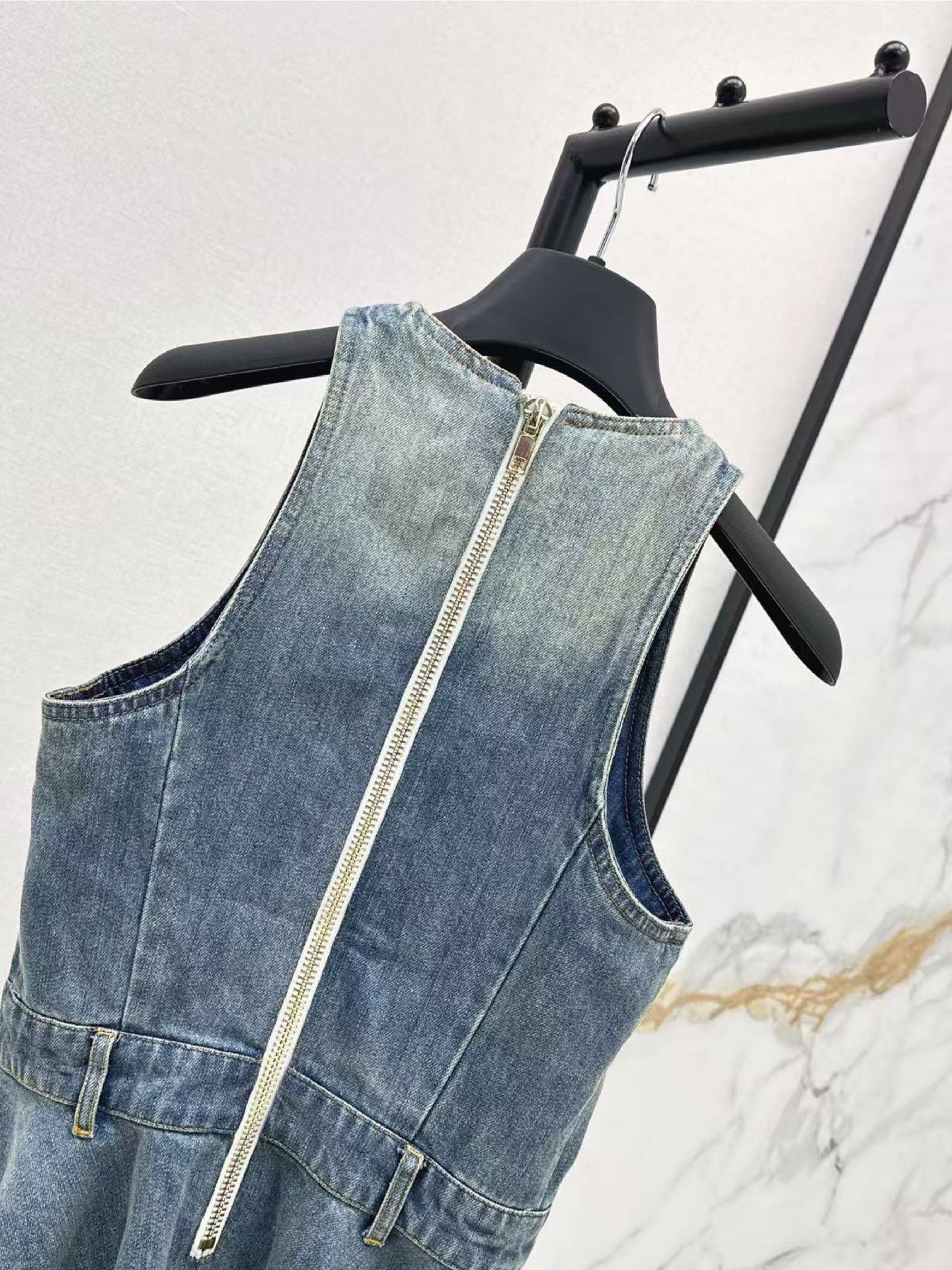深圳南油25春夏高端女装简约高级收腰设计翻领无袖牛仔连衣裙