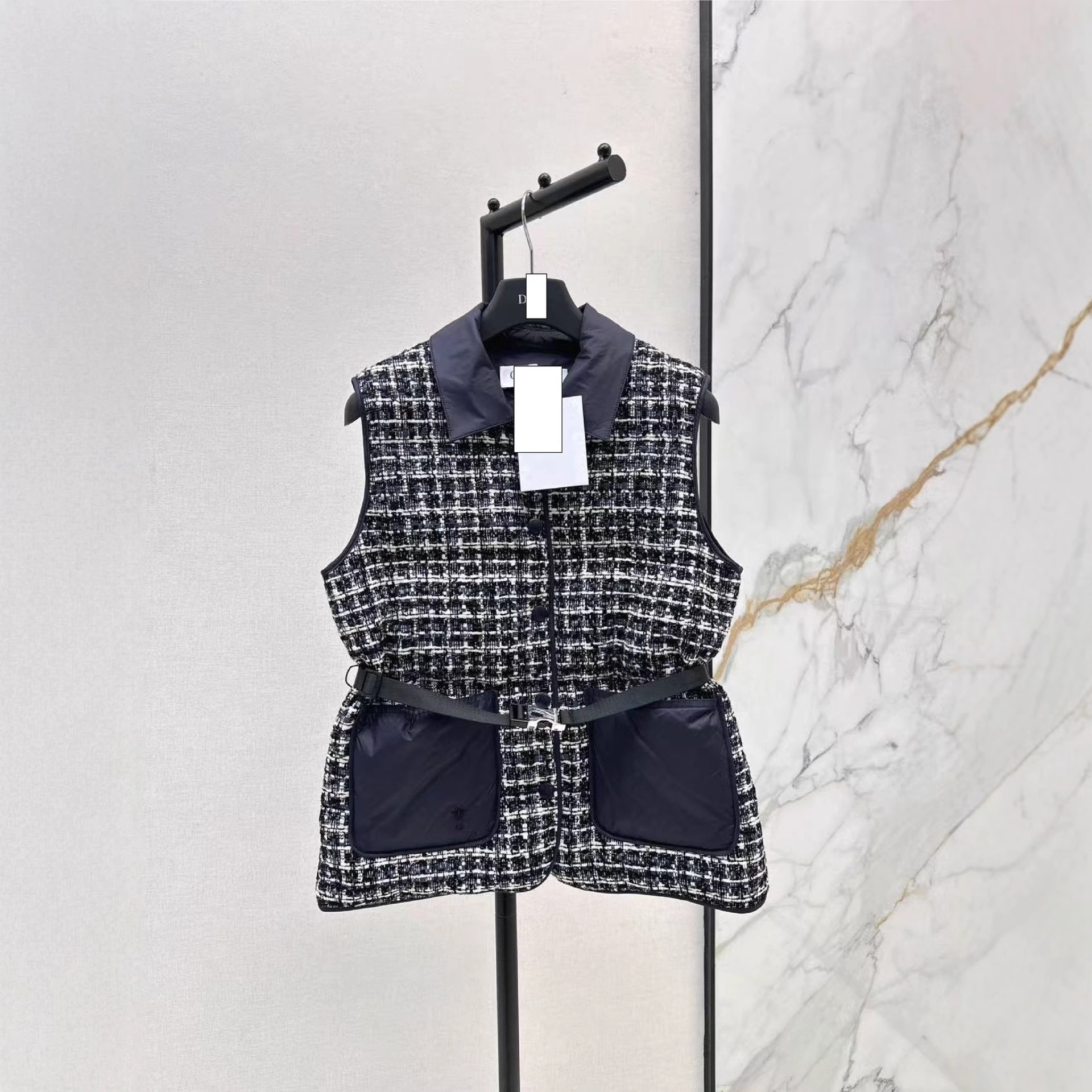 深圳南油25春夏女装百搭单品显瘦高级粗花呢马甲外套