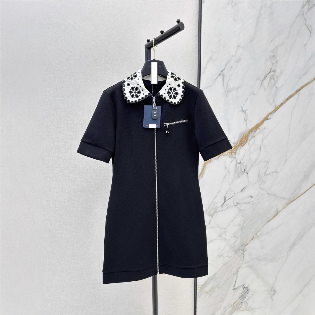 深圳南油2025春夏减龄洋气甜美可爱娃娃领拉链连衣裙