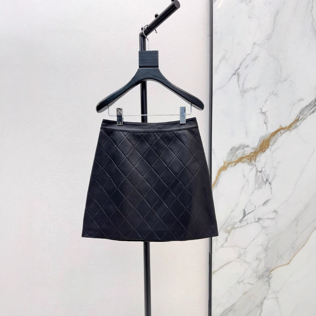 深圳南油25春夏高端女装优雅帅气时髦coco女孩菱格真皮半裙