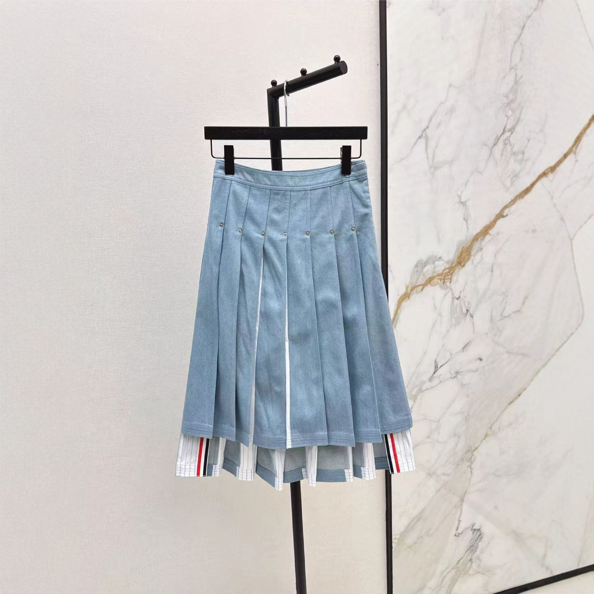 深圳南油25春夏高端女装百搭少女感又甜又辣撞色高腰百褶裤裙