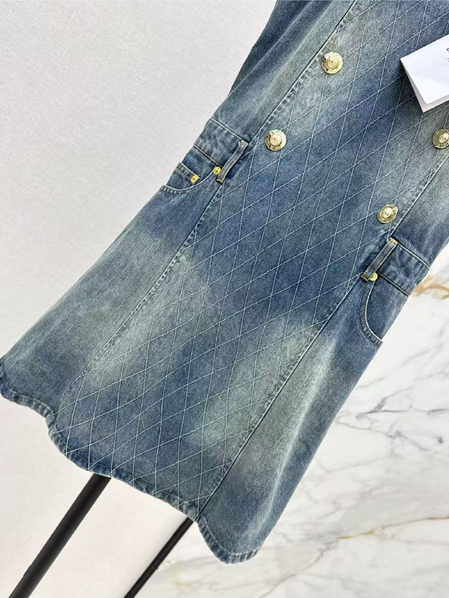 深圳南油25春夏高端女装气质优雅摩登喇叭型大裙摆丹宁牛仔连衣裙