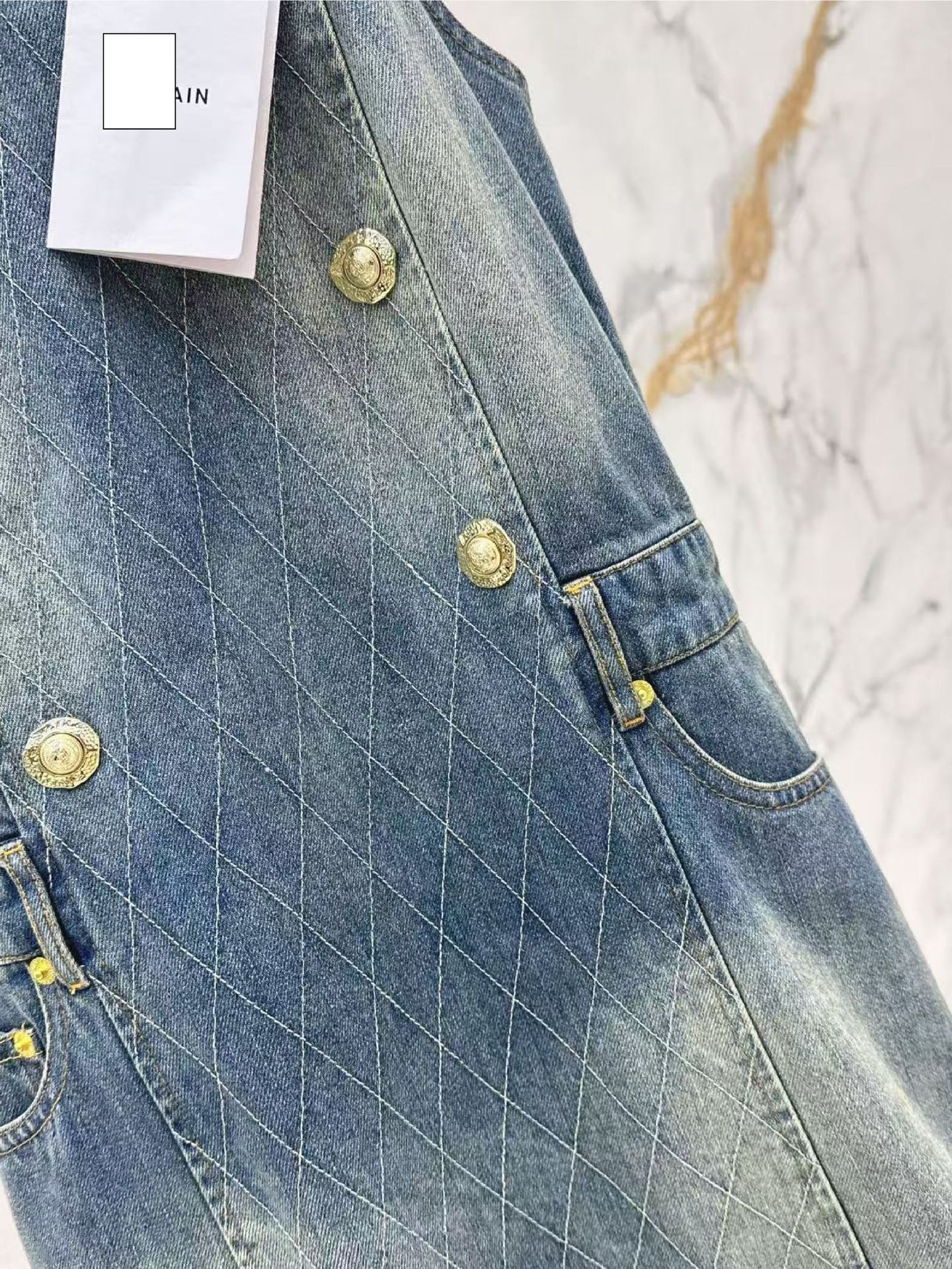 深圳南油25春夏高端女装复古洗水高级珍珠链条阔腿牛仔裤