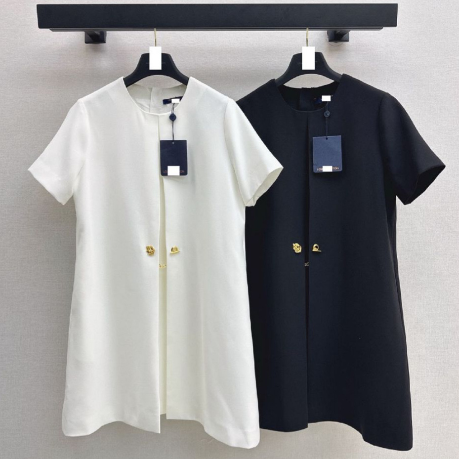 深圳南油25春夏高端女高级优雅航海链条船锚金属扣装饰短袖连衣裙