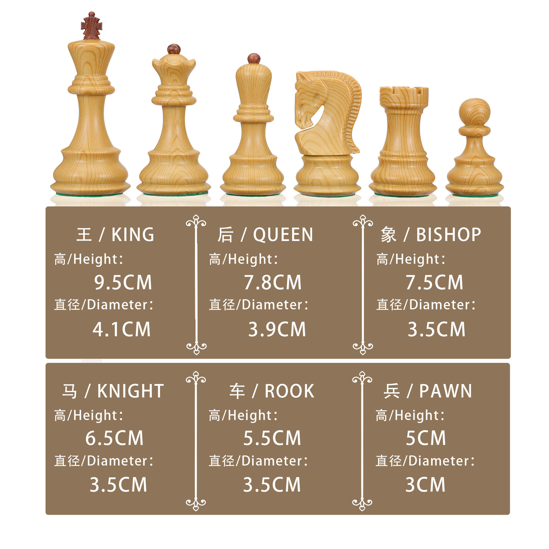 3.75in英寸全实木国际象棋子斯汤顿国际象棋标准比赛大号木质棋子