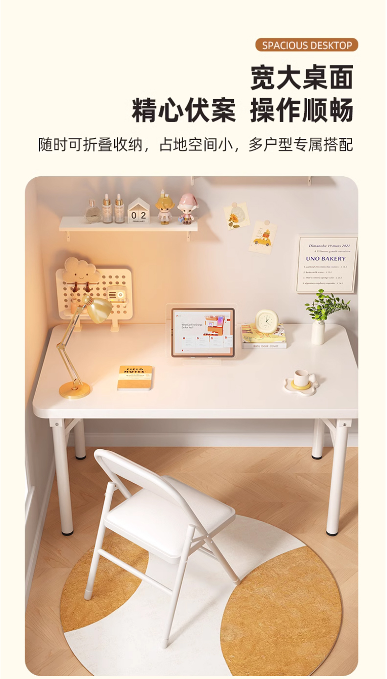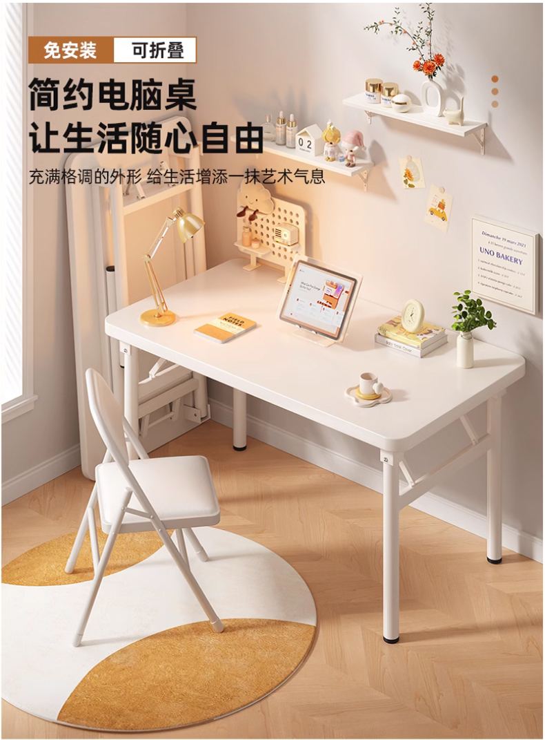 可折叠电脑桌台式卧室家用办公学习简易长方形出租屋小户型书桌子