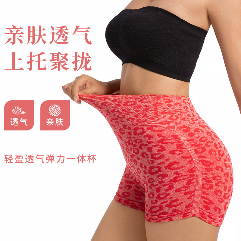 国境を越えた売れ筋のヨーロッパとアメリカの夏のハイウエストおなかコントロールスポーツショーツヒョウ柄ピーチショーツランニングフィットネスヨガショーツ