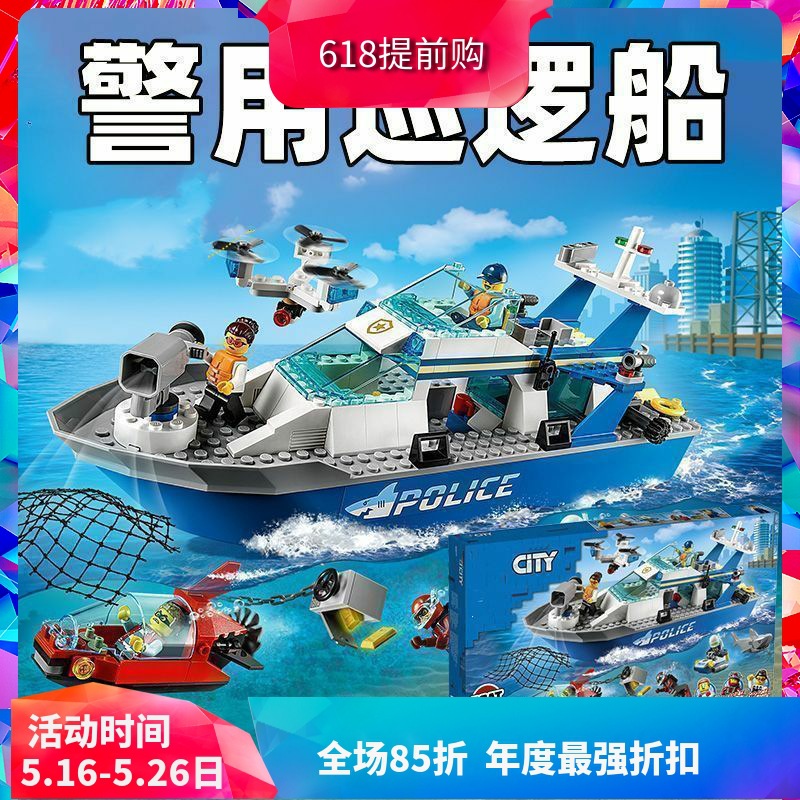 中国ビルディングブロックシティシリーズ 60277 警察パトロールボート警察船少年組み立ておもちゃ子供のギフト