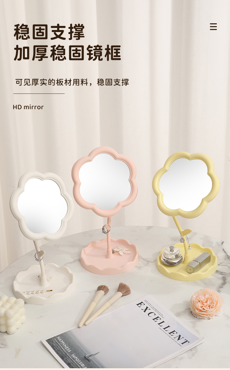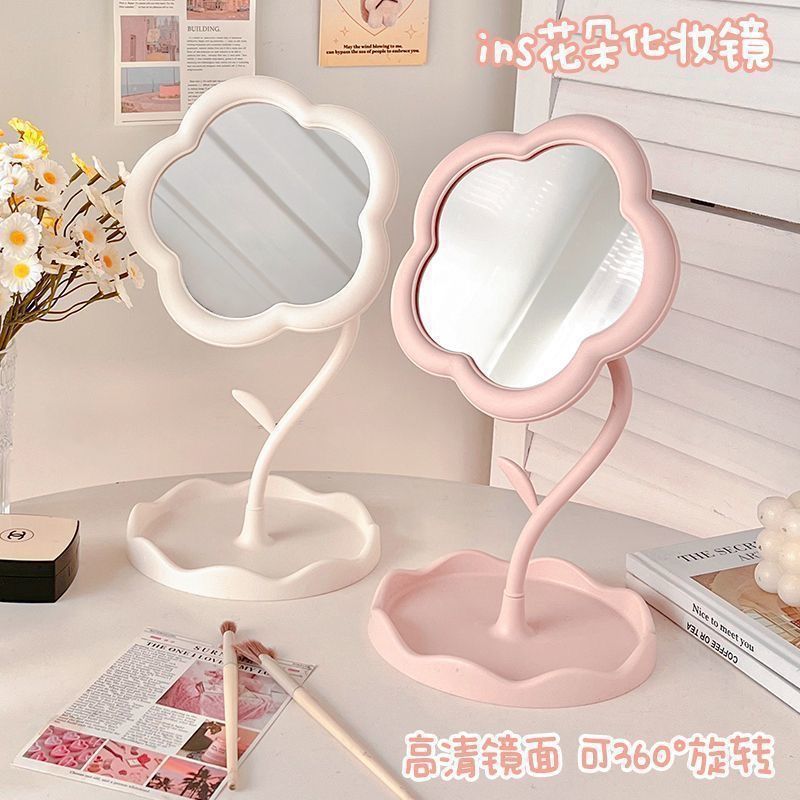 ins风花朵镜子创意宿舍卧室桌面高颜值收纳化妆镜可爱女生梳妆镜