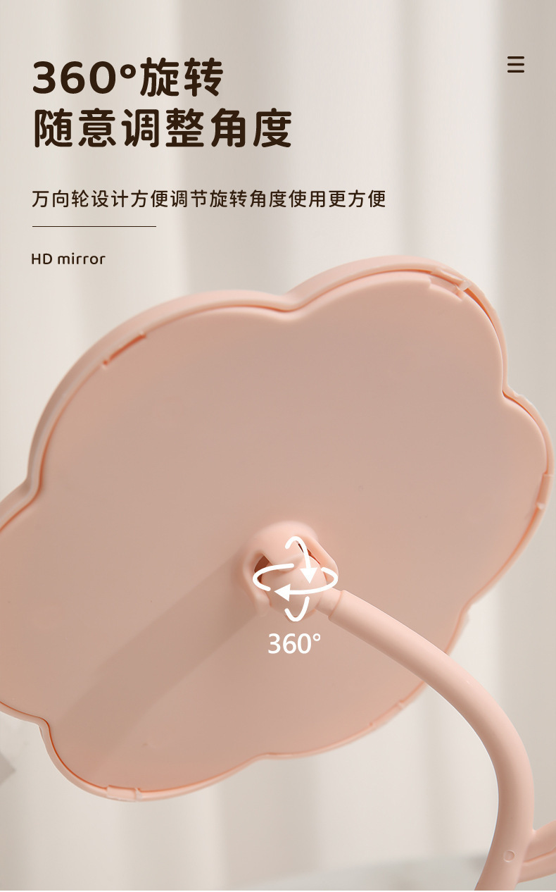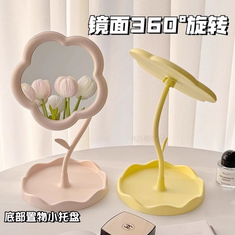 Ins花ミラー寮寝室デスクトップ高颜値収納化粧鏡かわいい化粧鏡回転可能なアイデア