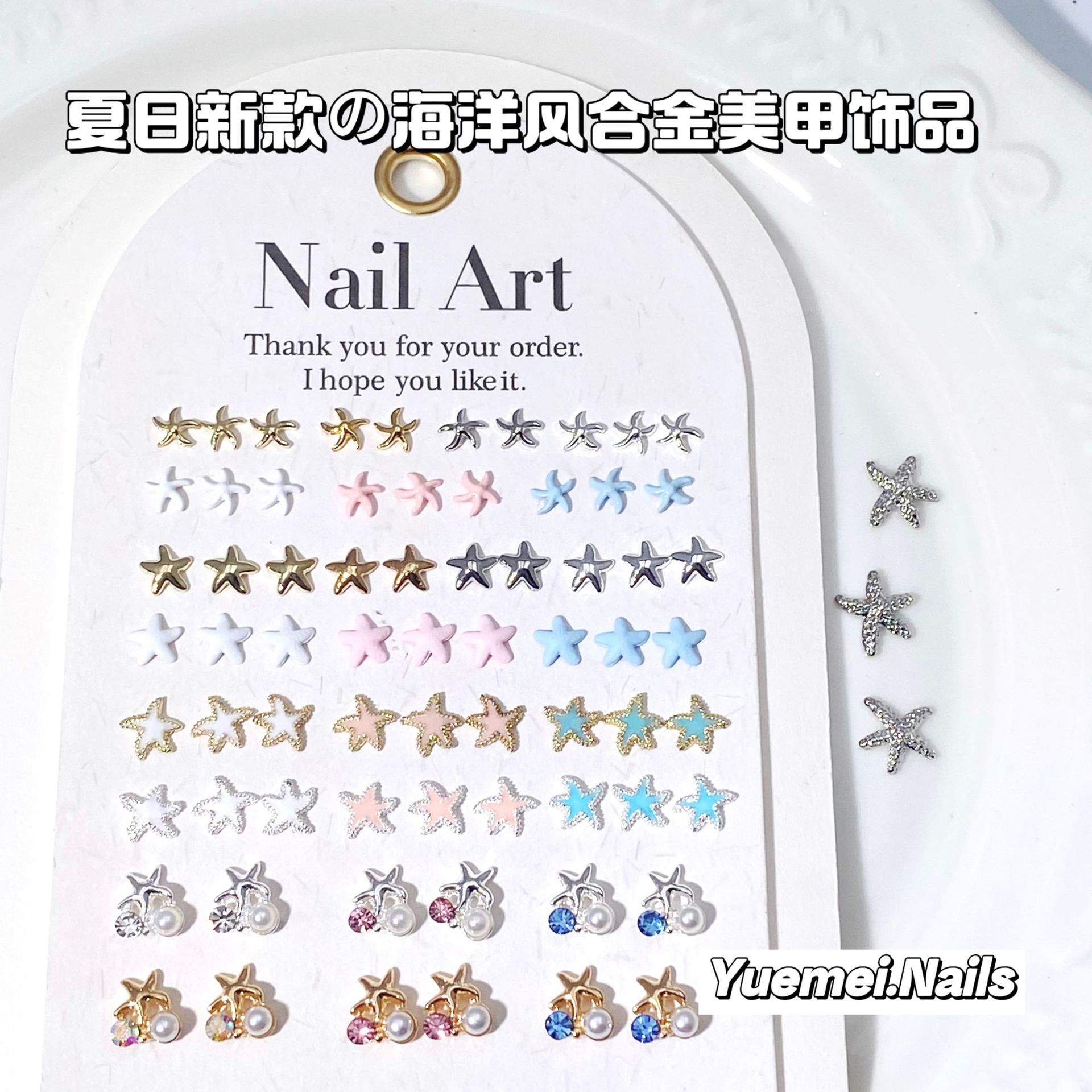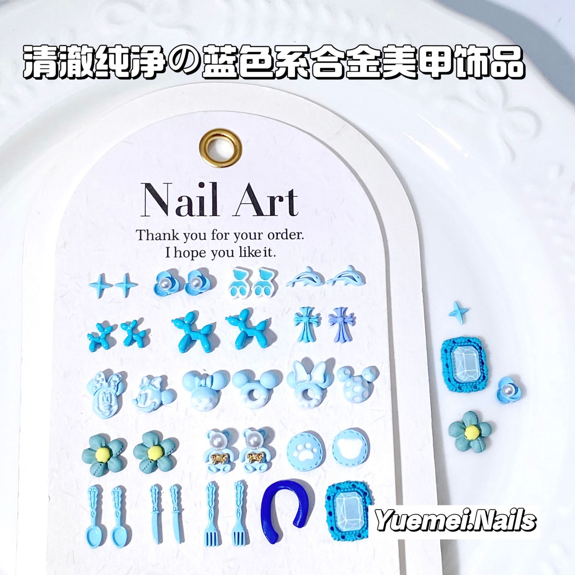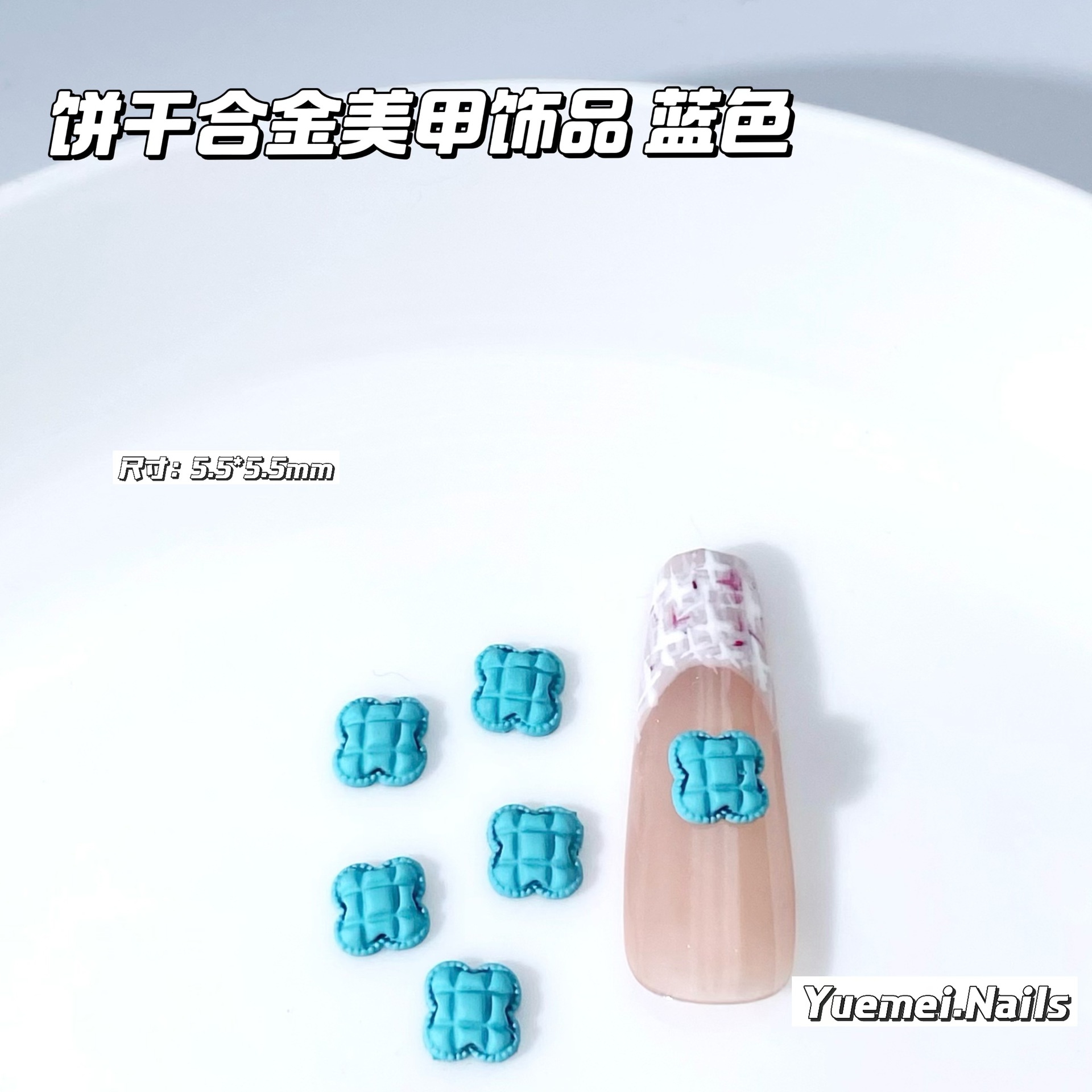 日韩热销海洋风清澈蓝色系合金饰品立体喷漆指甲金属配饰厂家批发
