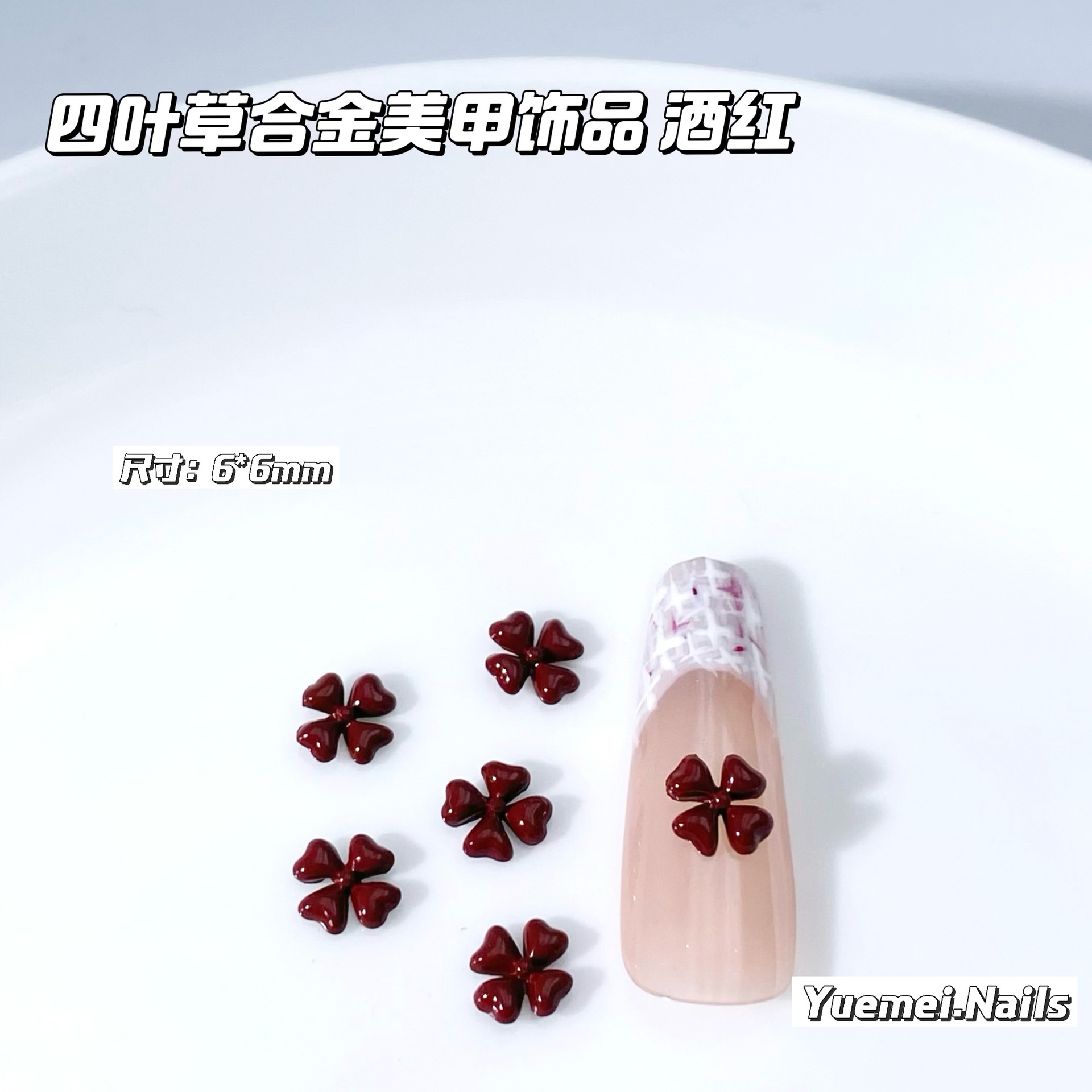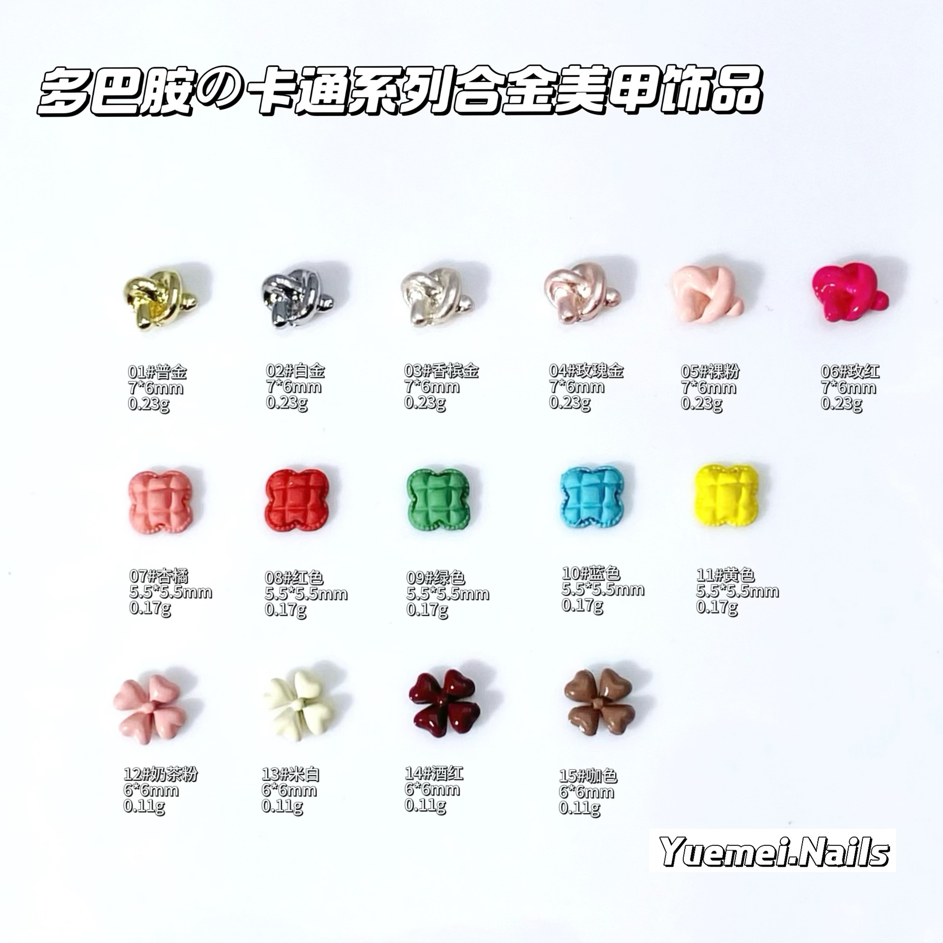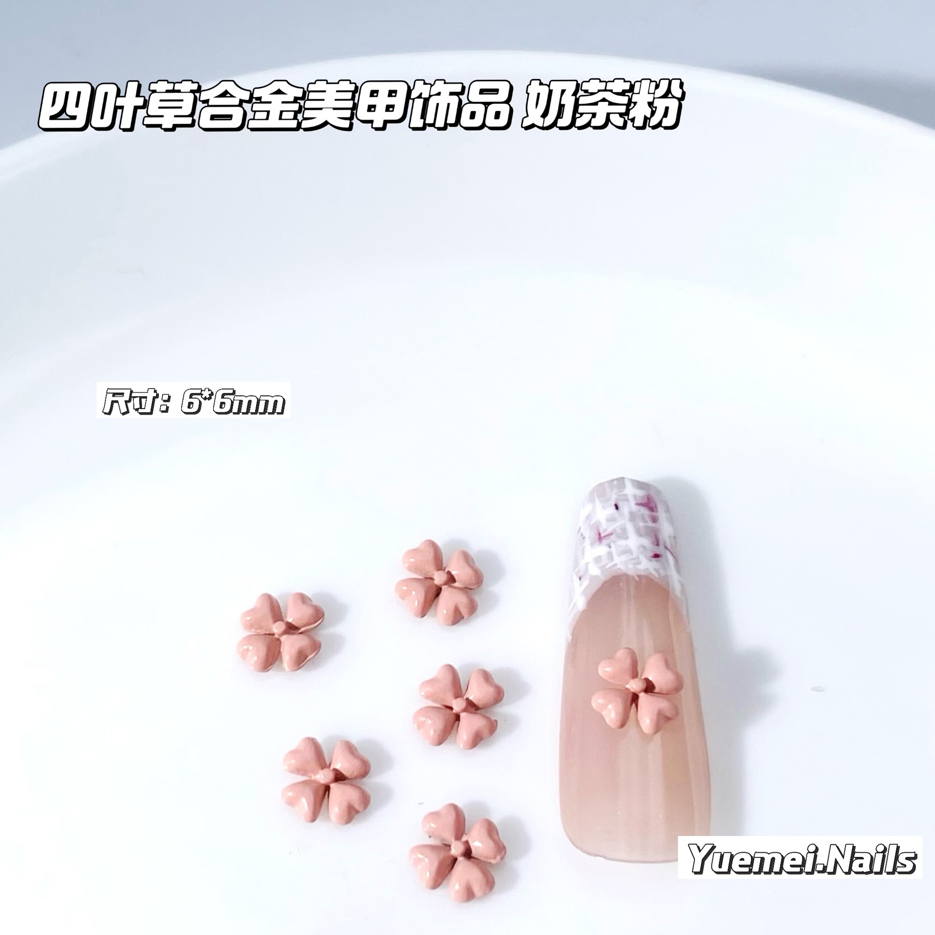 卡通扭扭结合金美甲视频幸运四叶草糖果色混合装指甲饰品配件批发