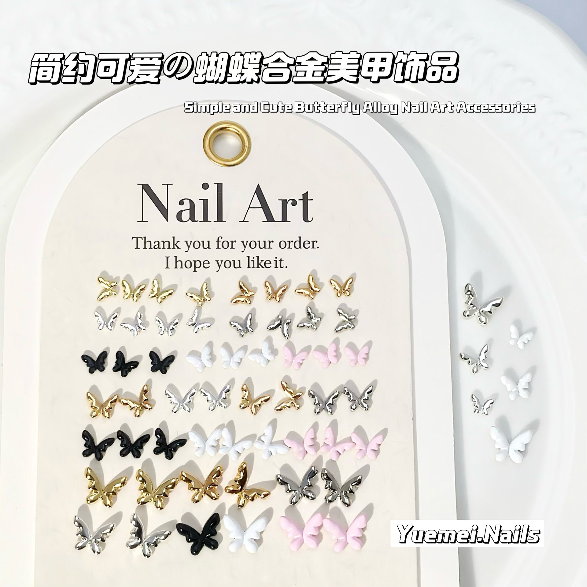 ins风立体美甲蝴蝶贴片 多尺寸多颜色合金饰品 简约风diy金属美甲