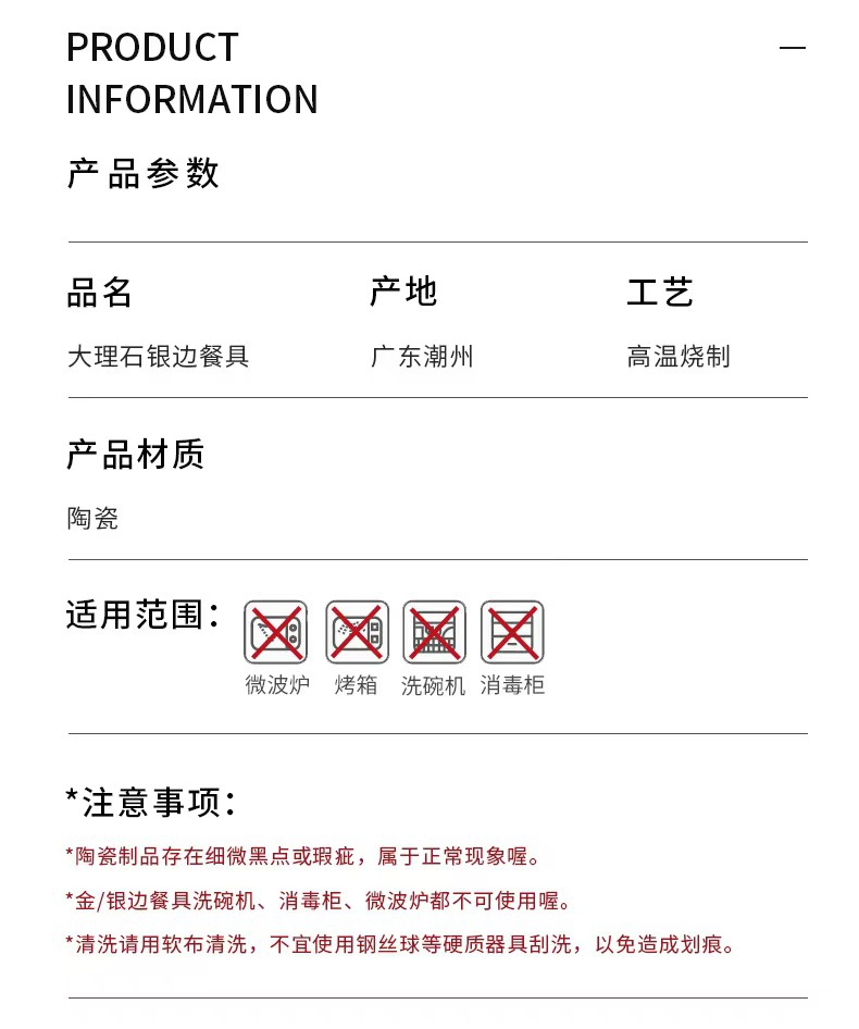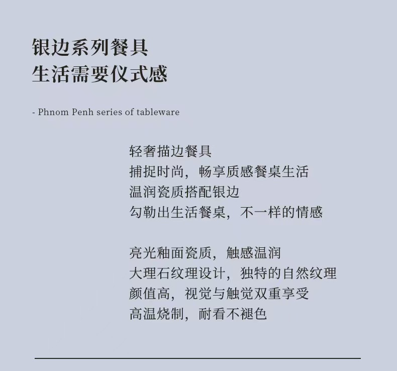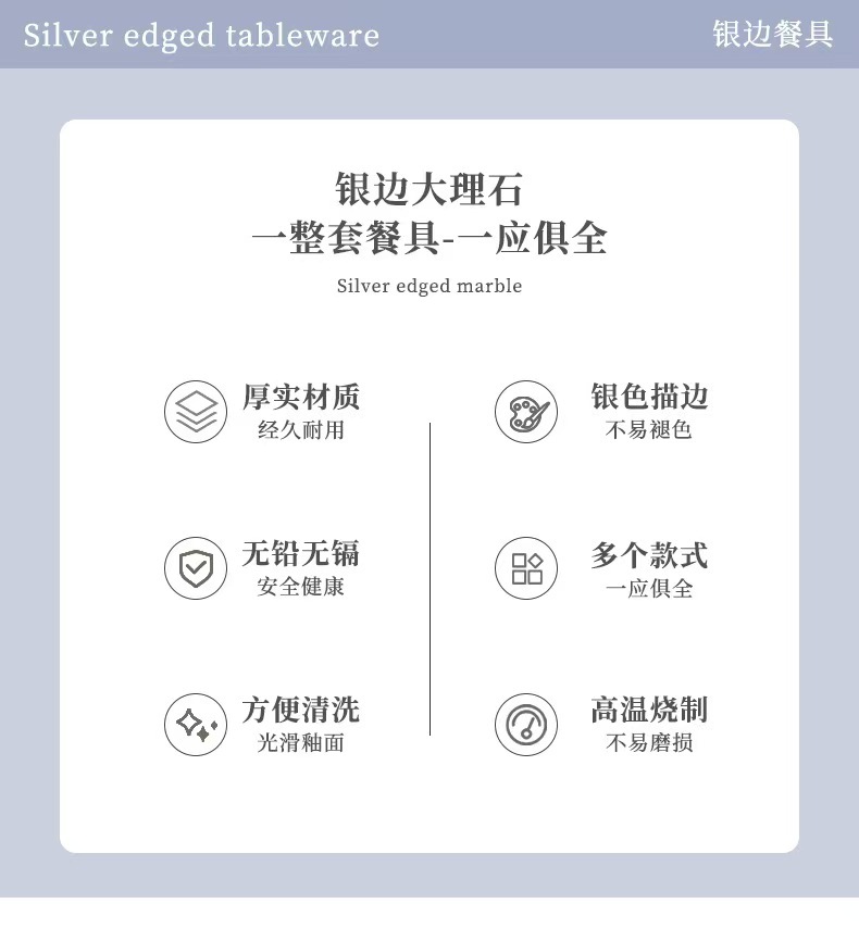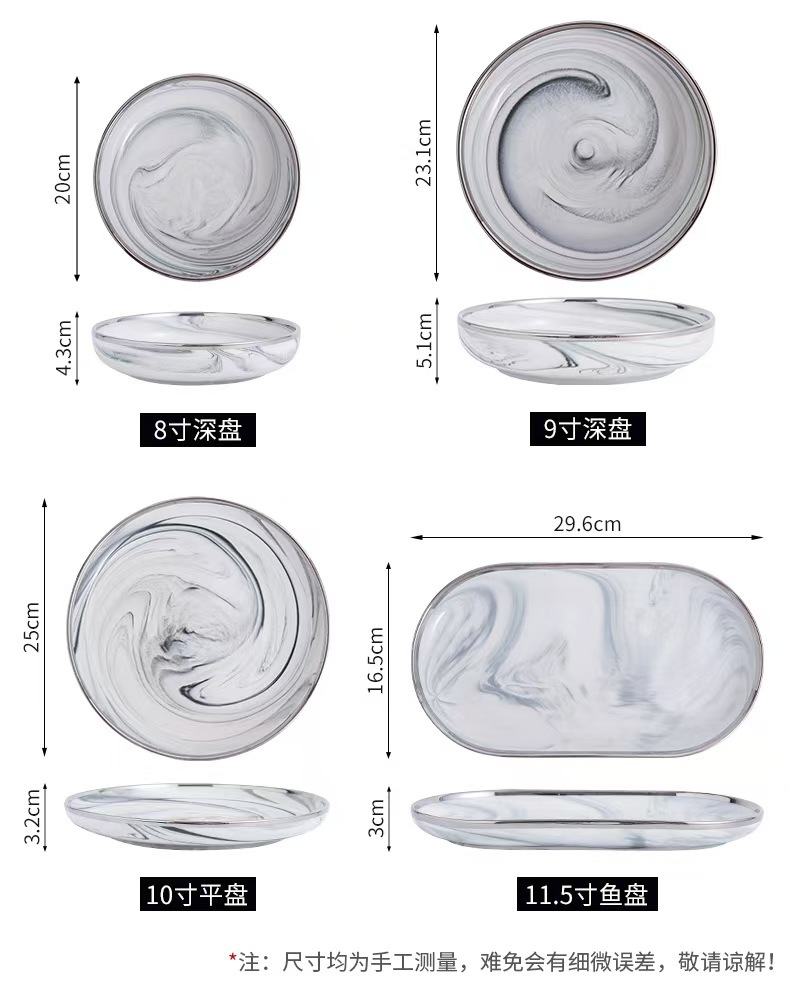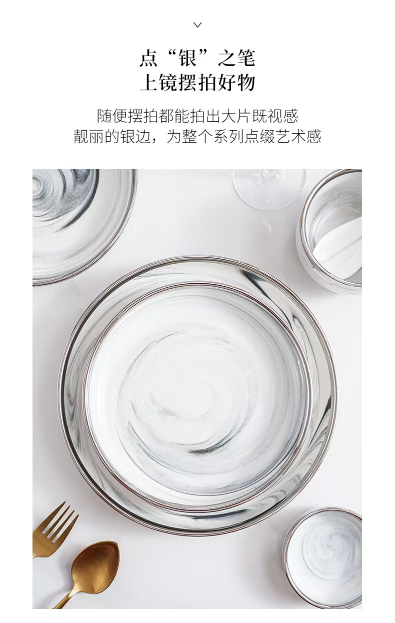 家庭用2024新型食器皿セット大理石銀辺軽贅沢食器皿セット