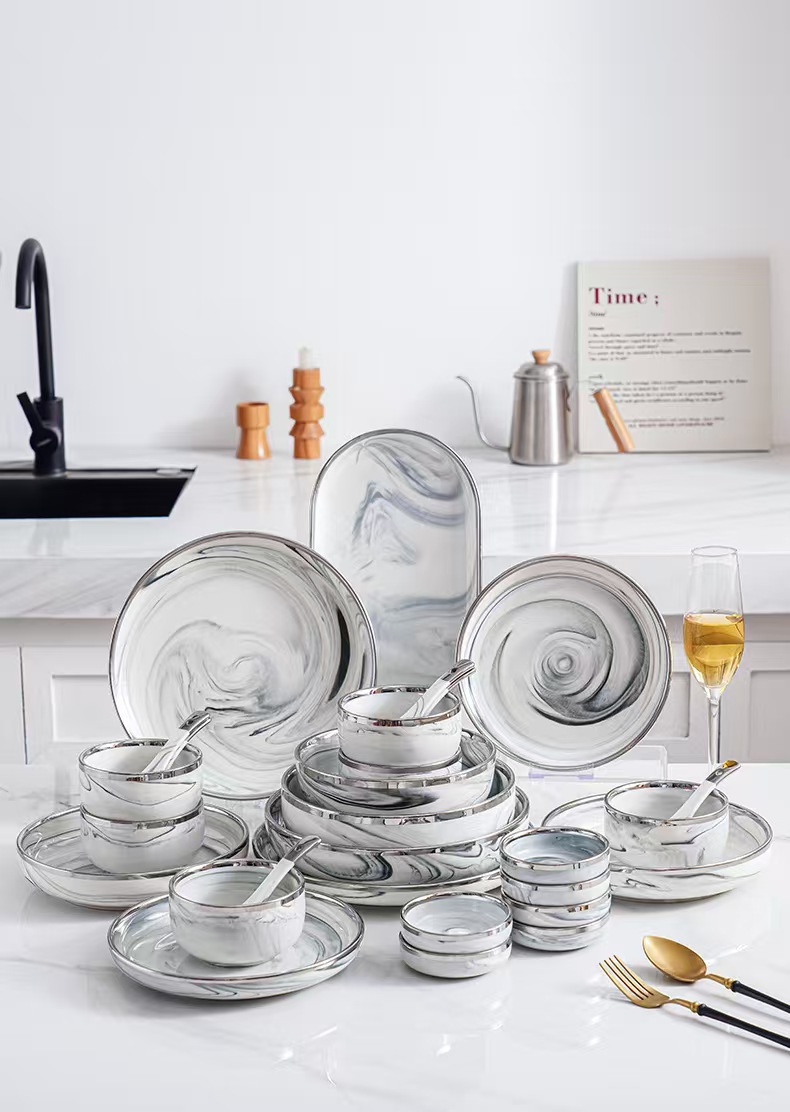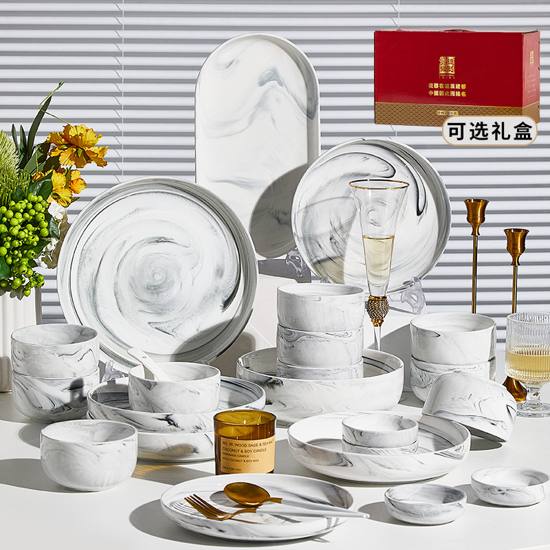 クロスボーダー大理石模様陶磁器食器セット家庭用碗皿皿高級感茶碗皿スープ碗卸売り