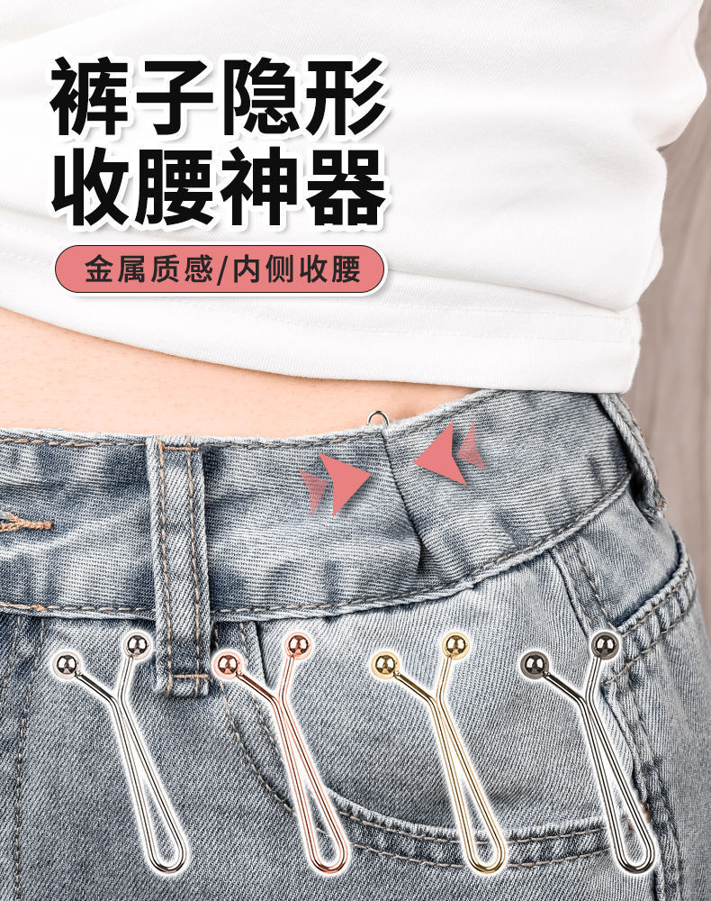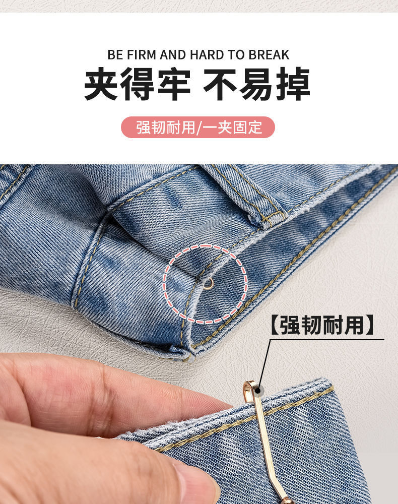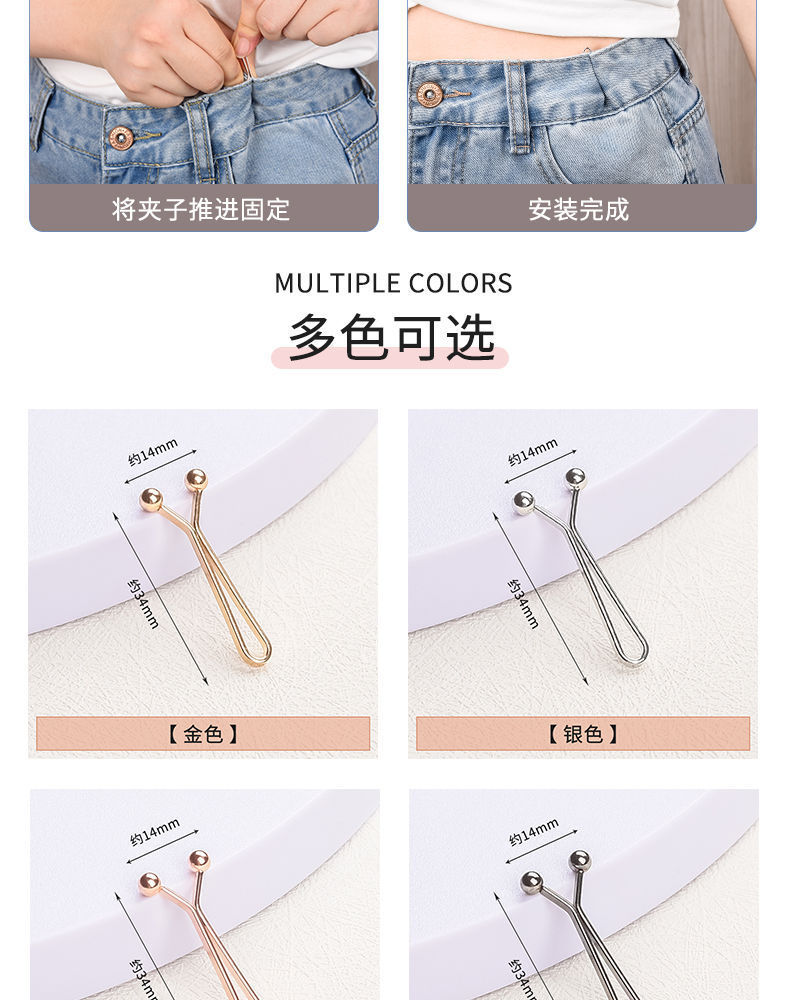 新しいジーンズウエストクリップ、パンツのウエストを小さくするためのツール、釘不要、調節可能な固定目に見えないピン