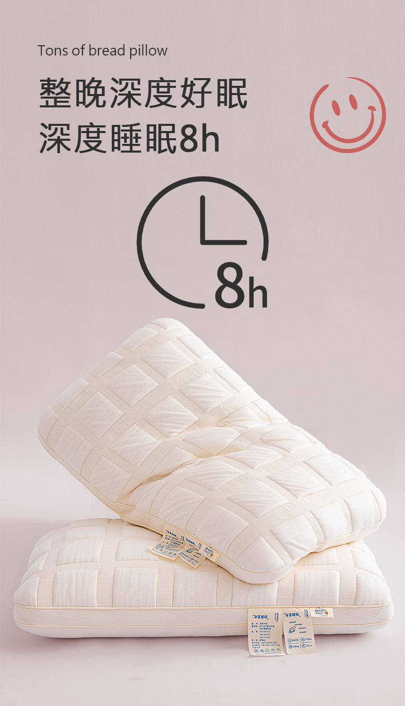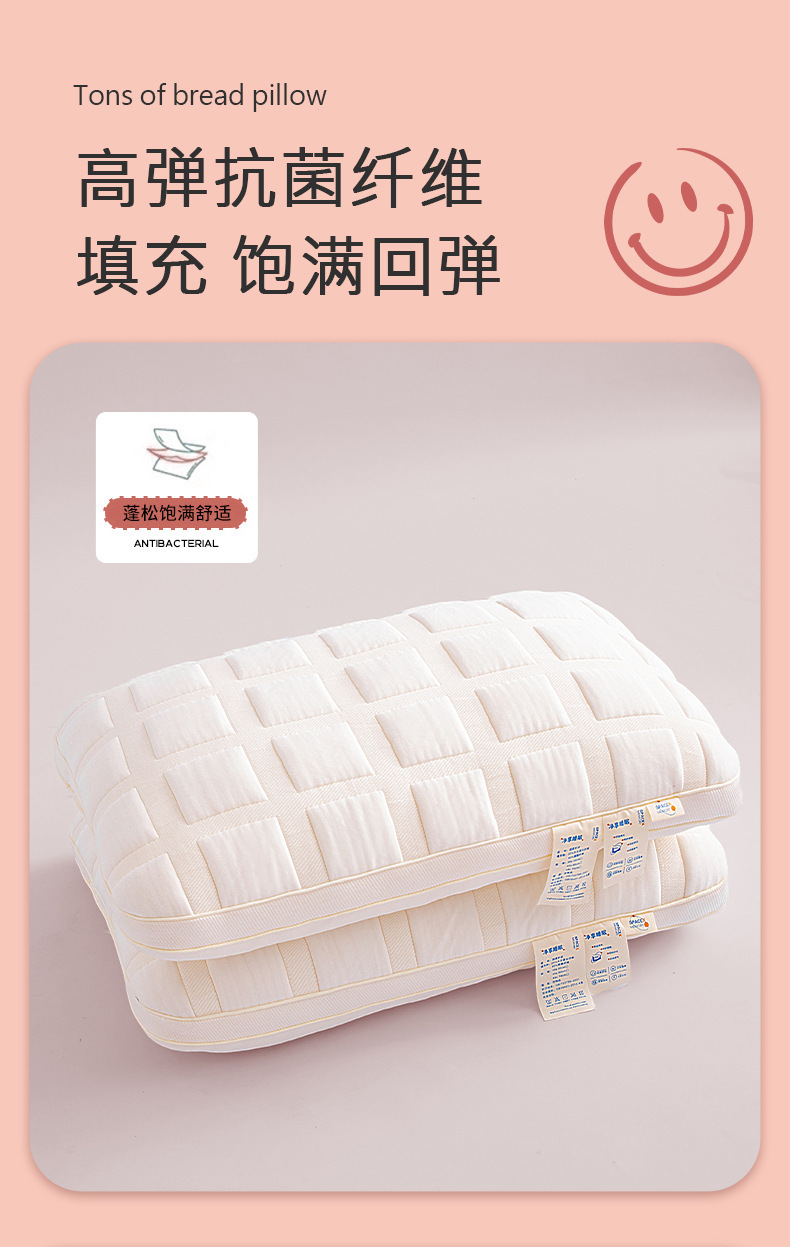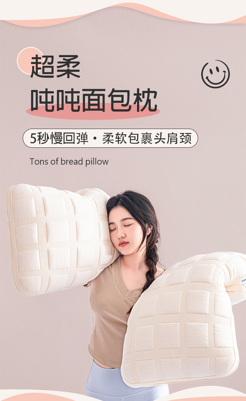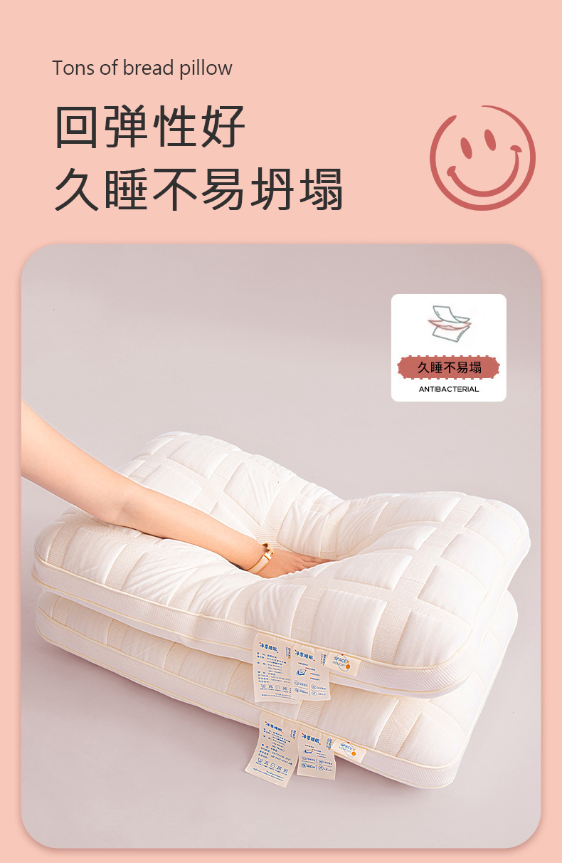 枕头枕芯吨吨面包枕超柔软可抱可枕高弹深睡眠护颈椎格子家用枕头