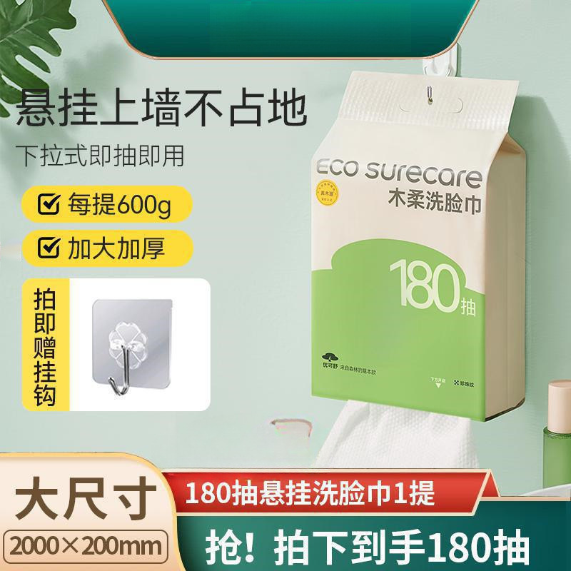 Youkesu 吊り下げ洗顔タオル 使い捨て洗顔タオル 180枚 通気性 大型パック 底面抽出 吊り下げ式 TJ