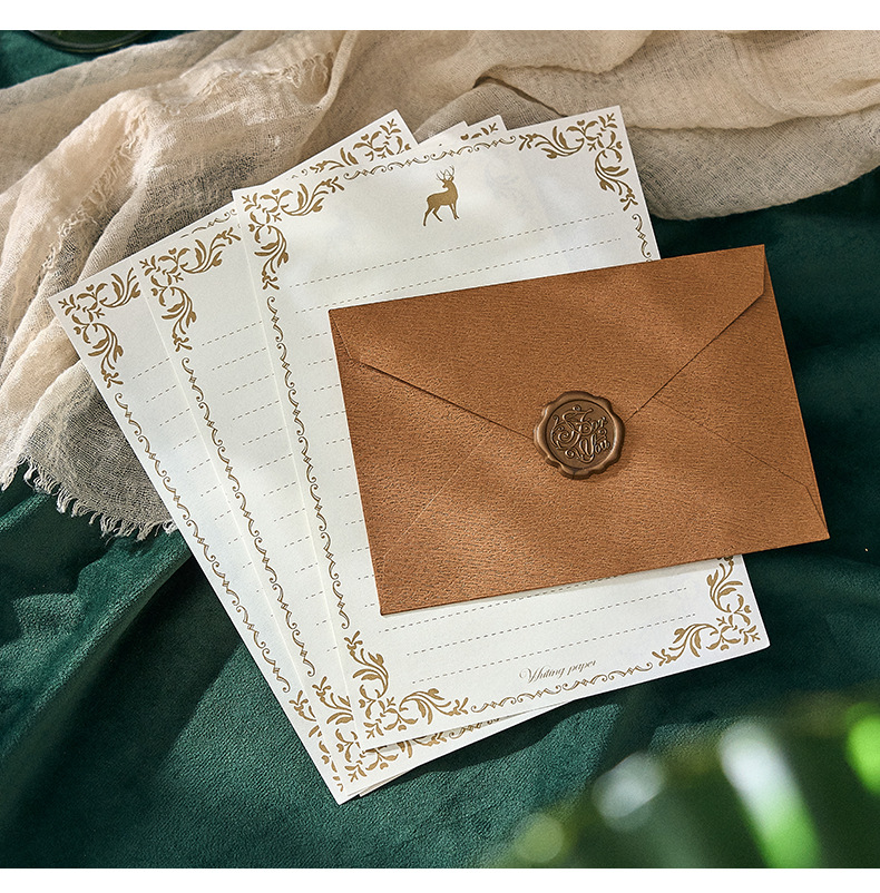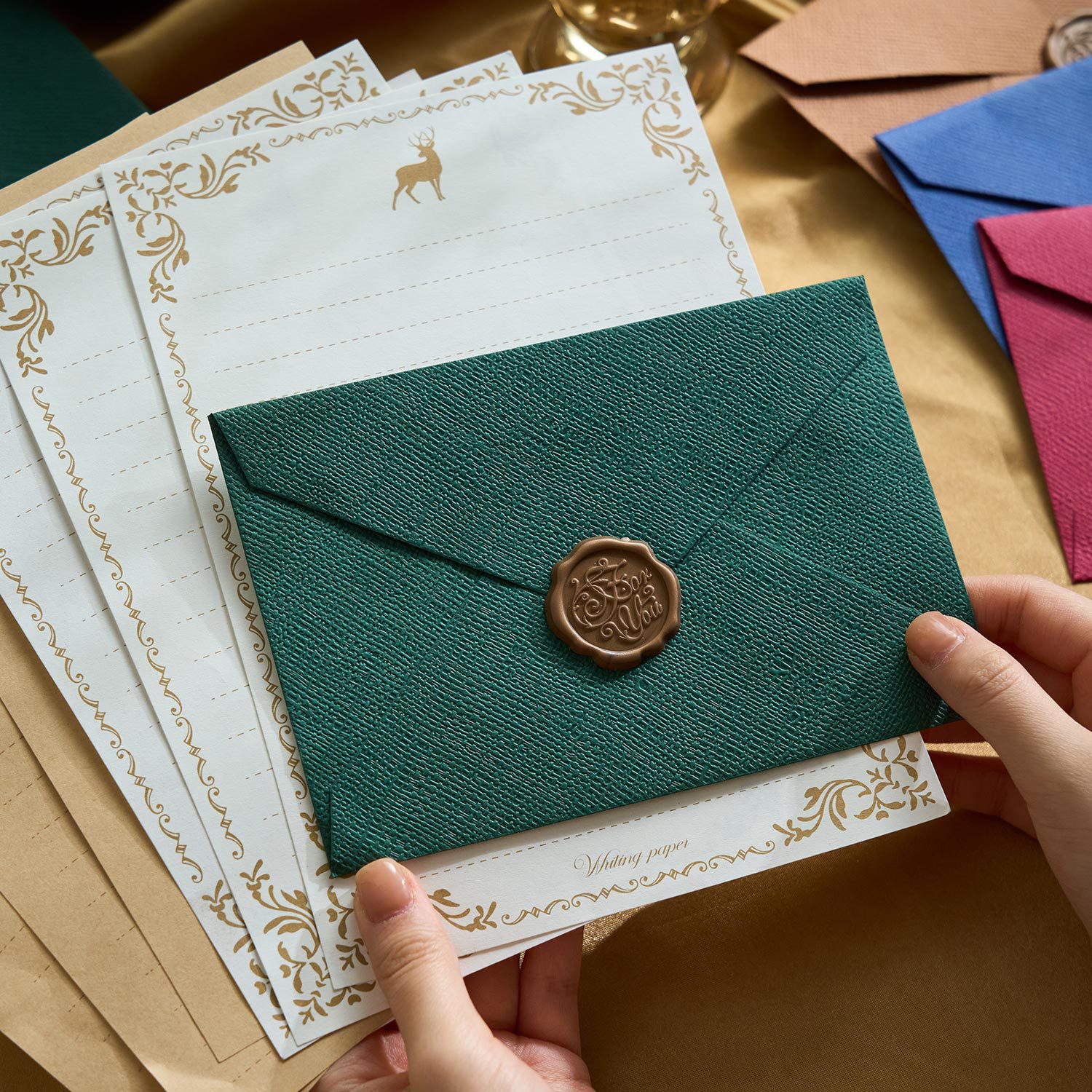 羊巴皮纹信封信纸套装火漆印章浪漫复古怀旧请柬文艺清新情书信笺