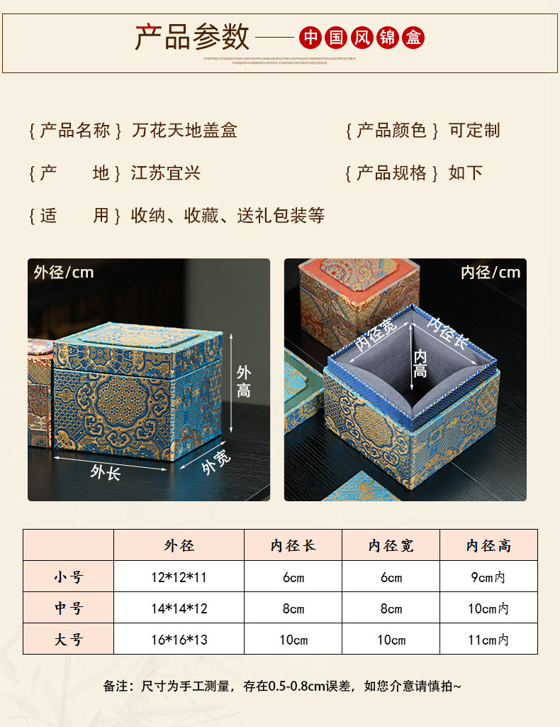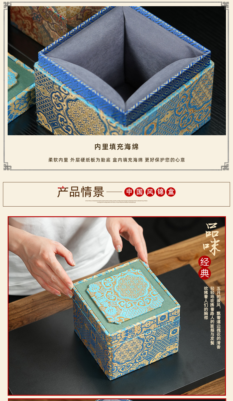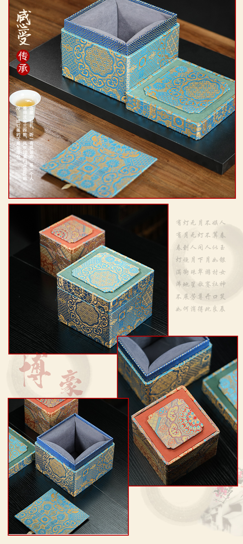 高級ギフト包装箱 ジュエリー、翡翠、翡翠、シルバージュエリー、パール、クリスタルガラス、瑪瑙ブレスレット、楽器、結婚祝い、銅器収納金襴箱、赤、黄、黒、白、青、レトロ陶磁器ティーセットギフト