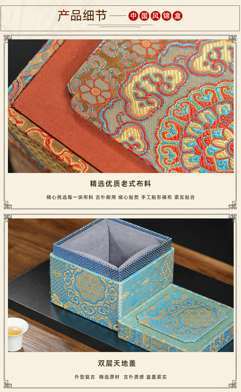 ボタン錦箱レトロ国風建杯磁器主人杯麻布錦箱紫砂壺茶器包装ギフトボックス
