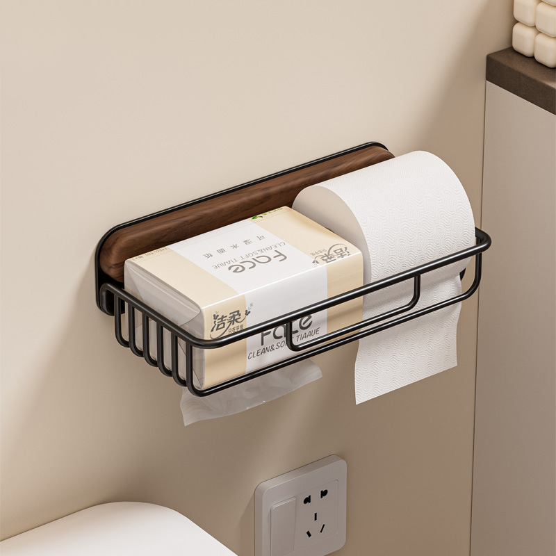 黑胡桃木纸巾盒厕所手纸架卫生间墙上免打孔实木创意纸巾架子批发