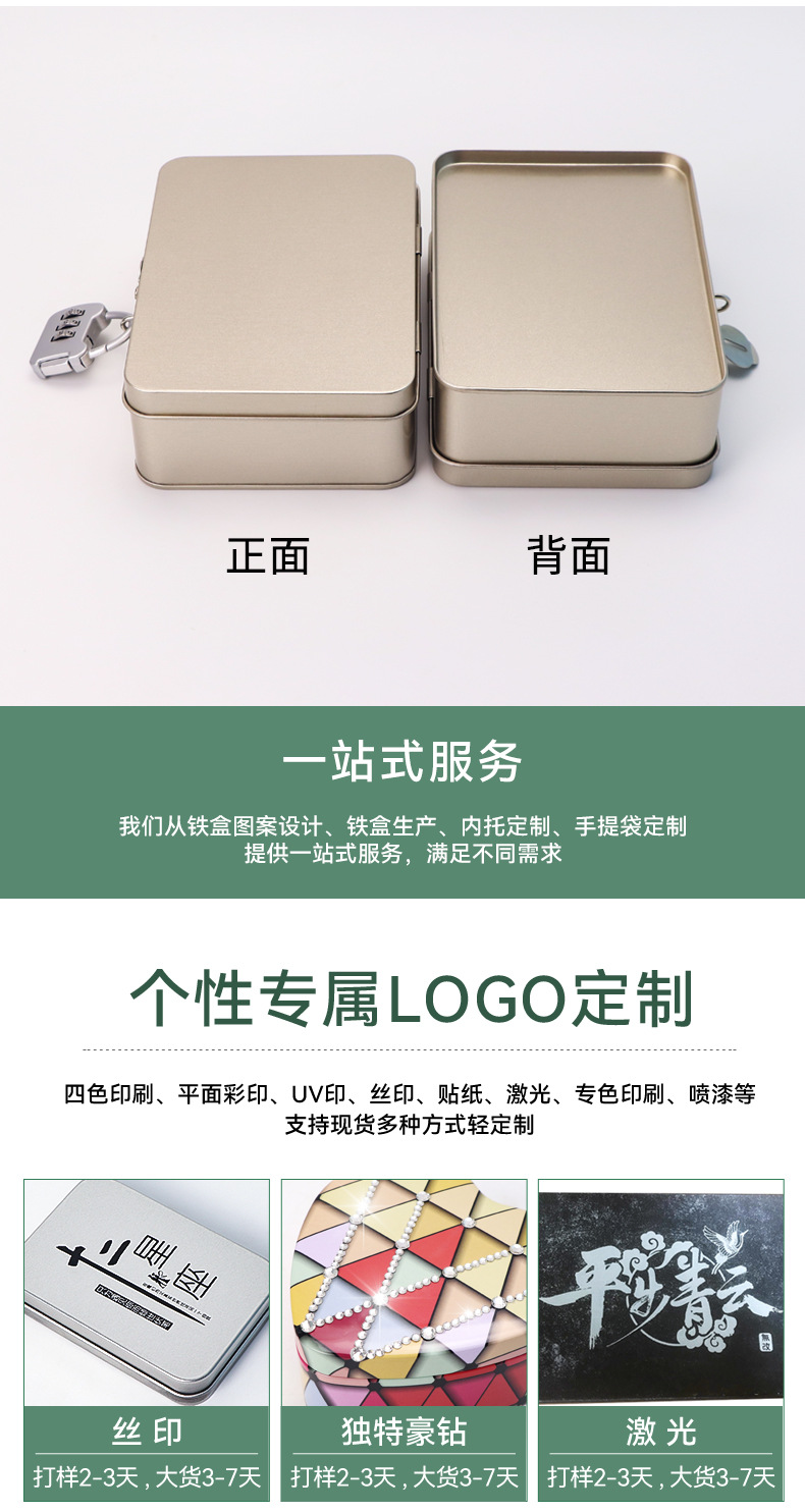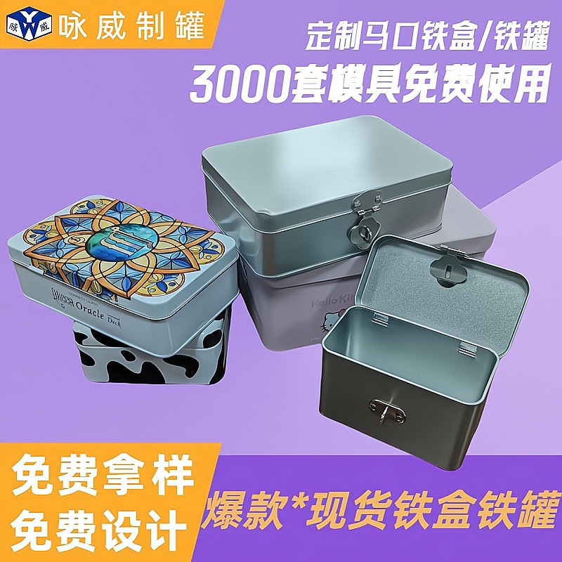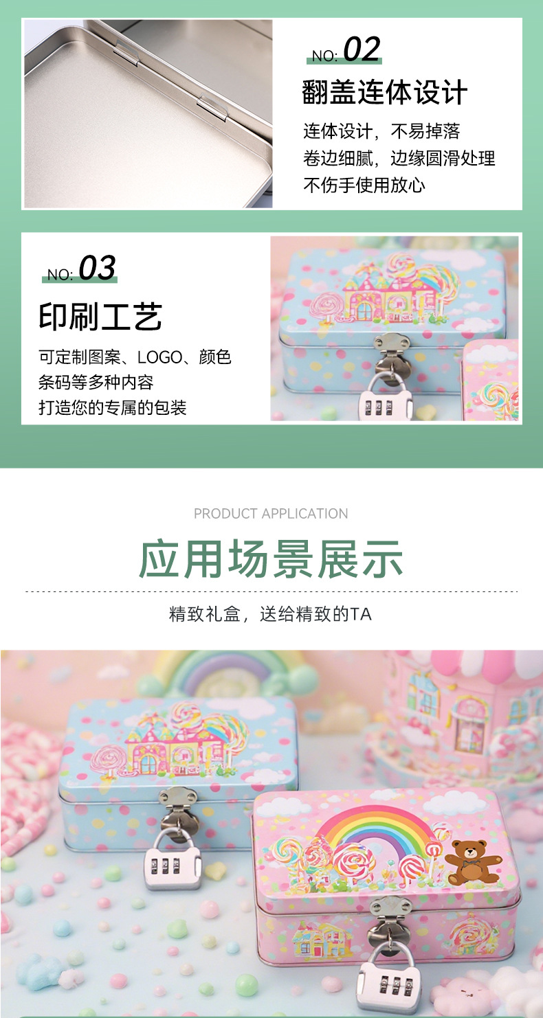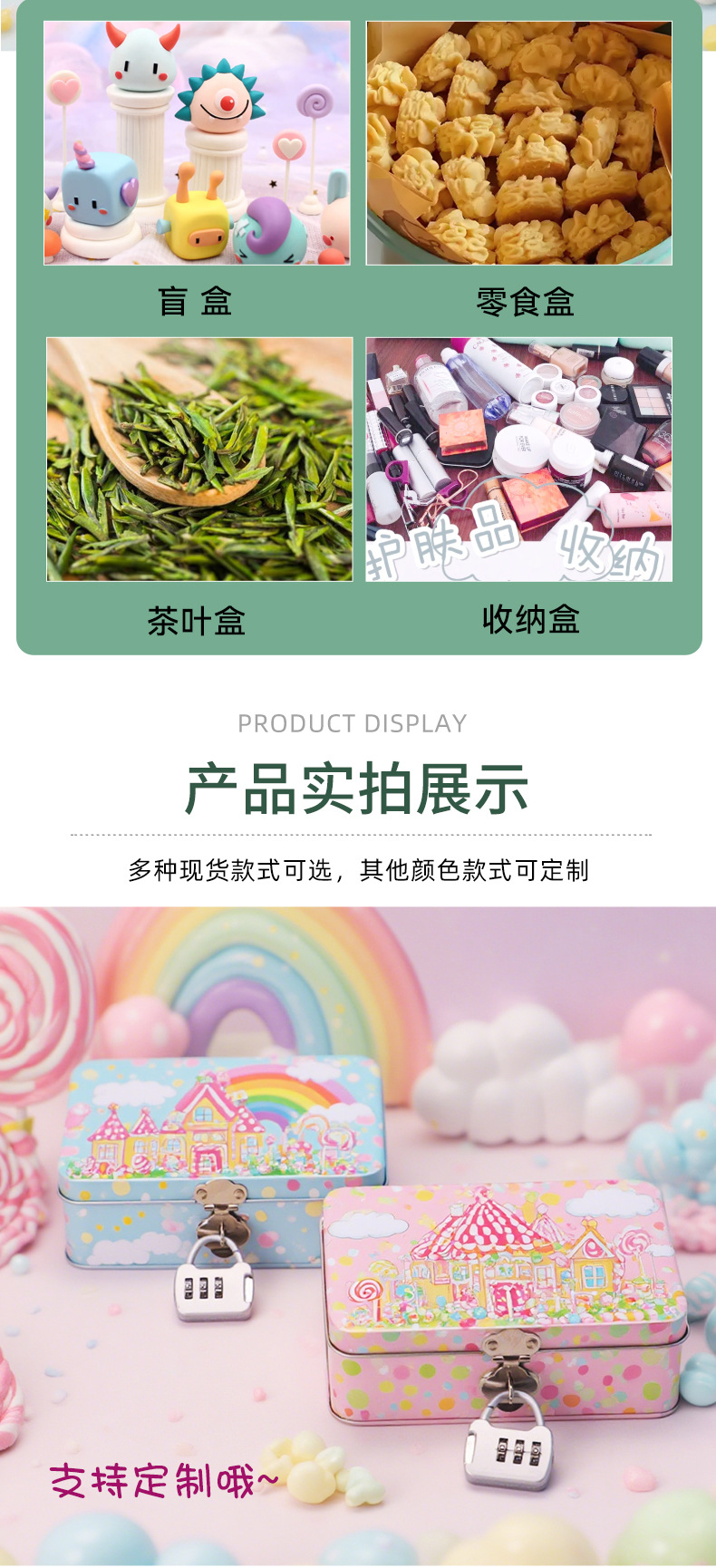 工厂现货长方形翻盖带锁铁盒储物 收纳铁盒 密码锁盲盒马口铁盒