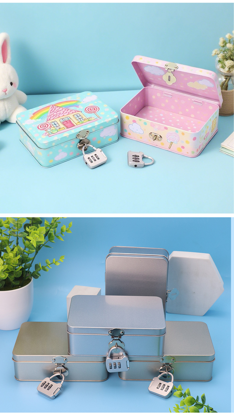 现货私域网红盲盒铁盒带锁 学生储钱隐私品礼品密码锁铁皮收纳盒
