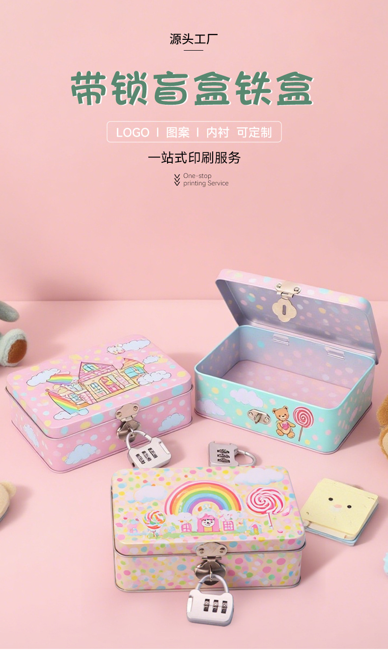爆款马口铁密码钥锁盲盒 收纳盒学生文具盒化妆品储物小铁盒包装