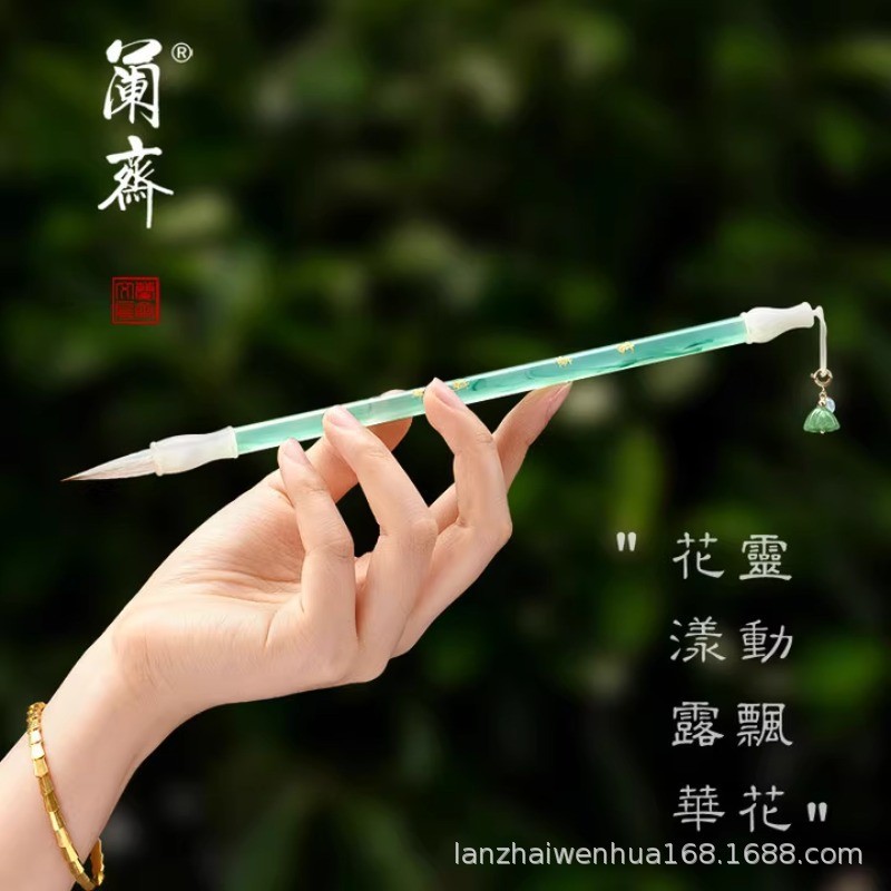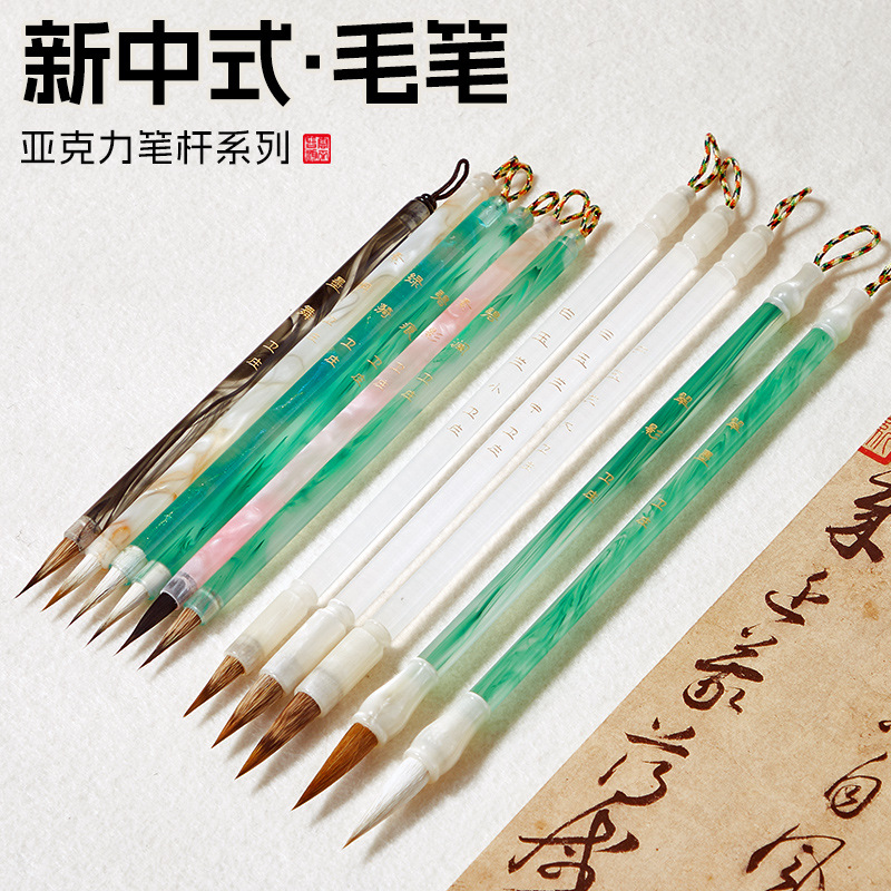 新中式狼毫国画毛笔高颜值簪花小楷毛笔楷行书专用毛笔亚克力杆