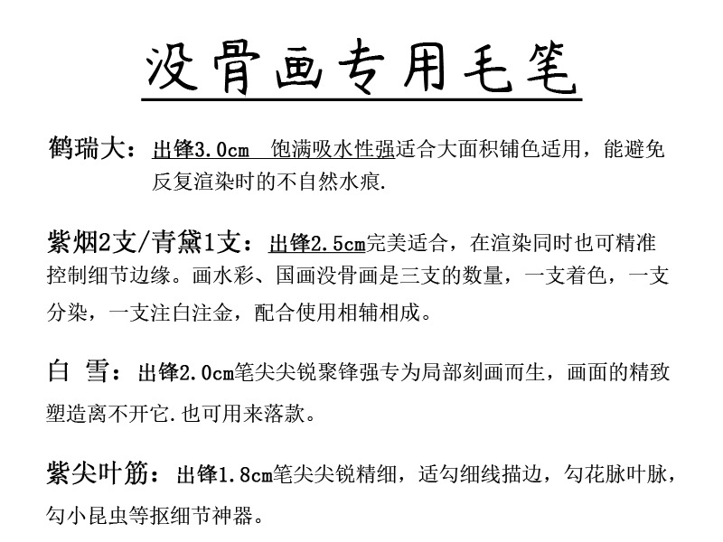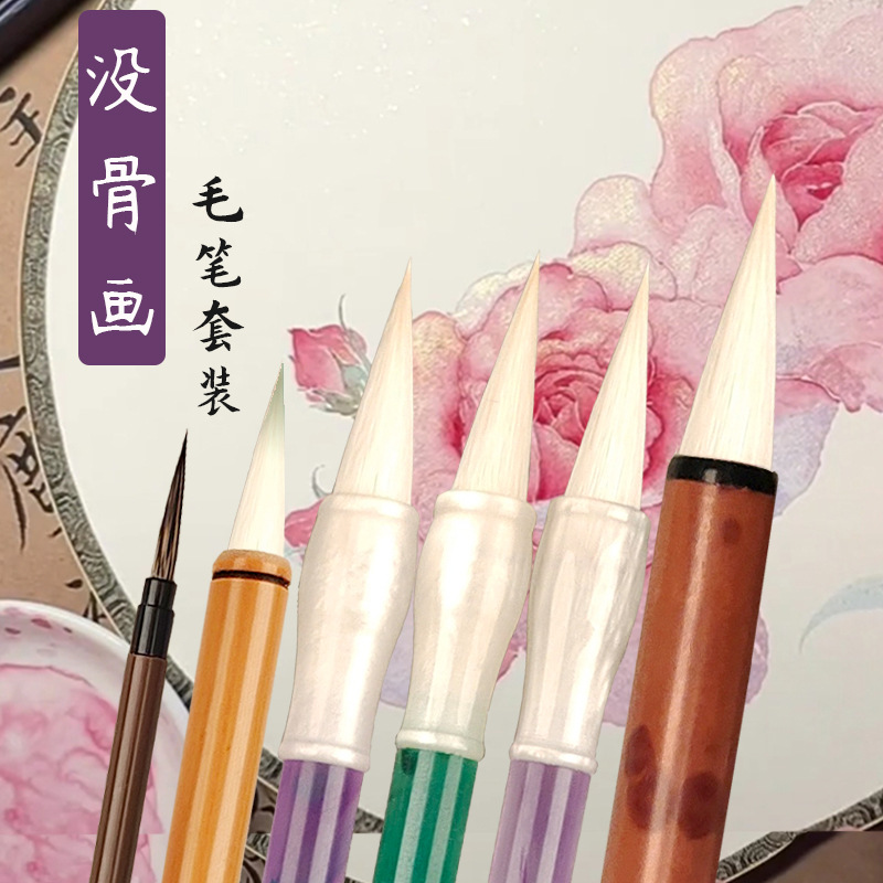 小品写意工笔没骨画专用毛笔水彩勾线染色花鸟国画初学者毛笔套装