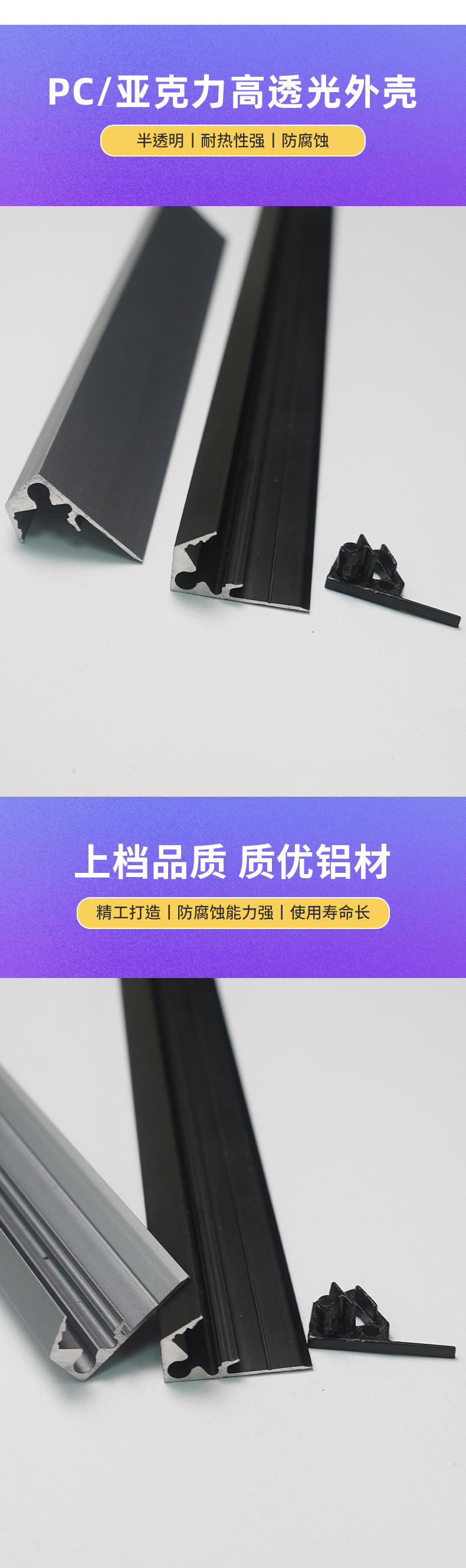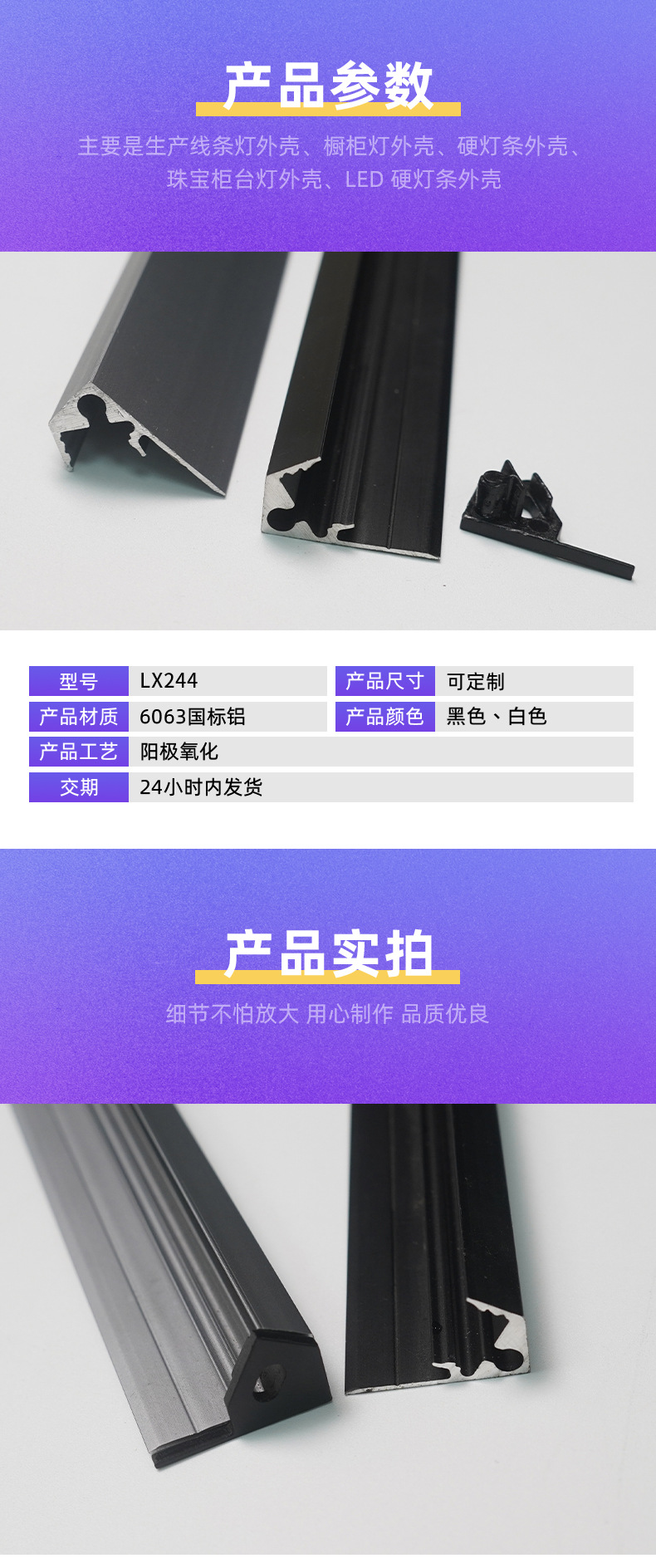 ガラスカウンターマッチング高強度パッチアルミニウム V 字型ハードライトストリップ放熱アルミニウムハウジング高強度硬質アルミニウム