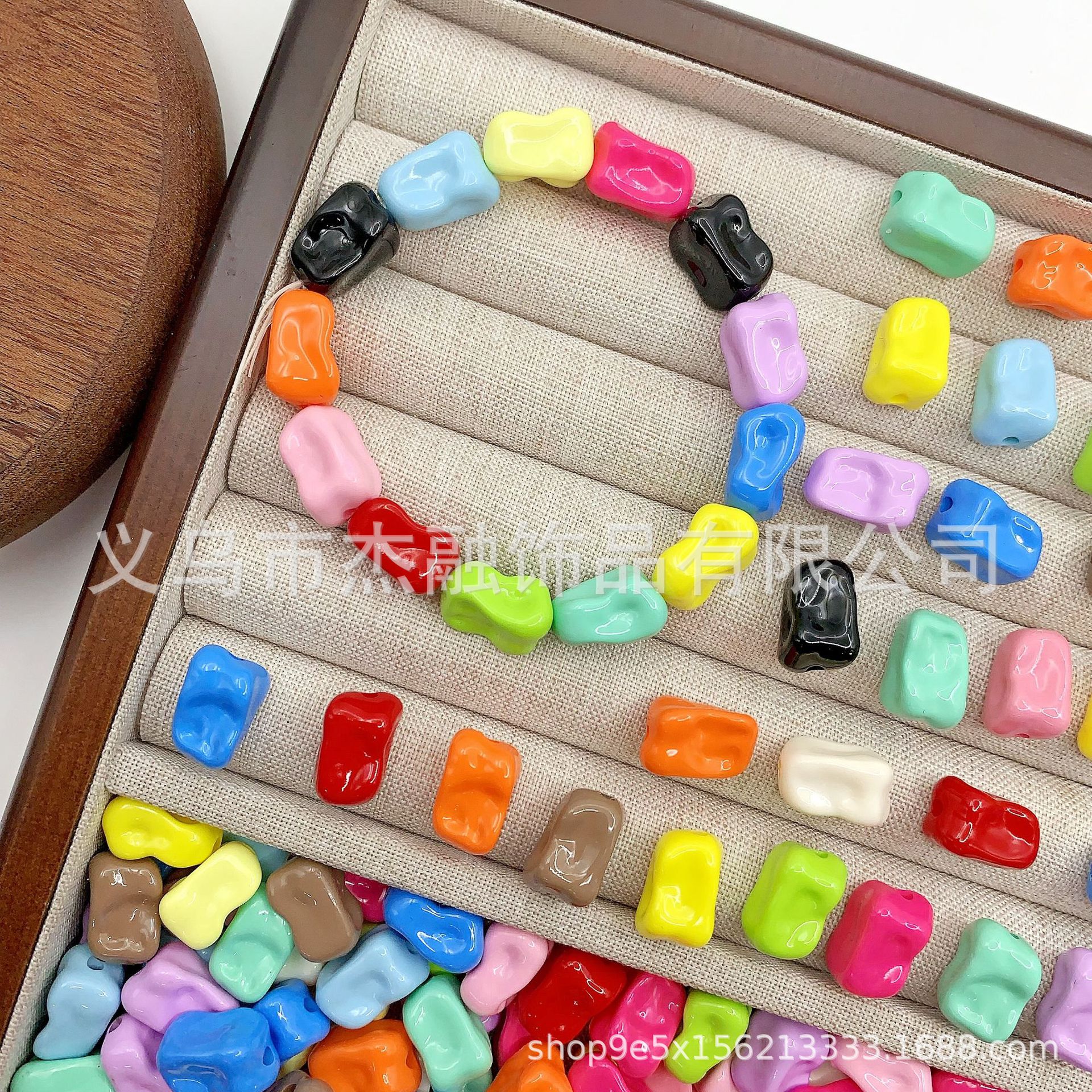 多巴胺色烤漆碎石异形珠亚克力方形隔珠串珠diy手机链钥匙扣配件