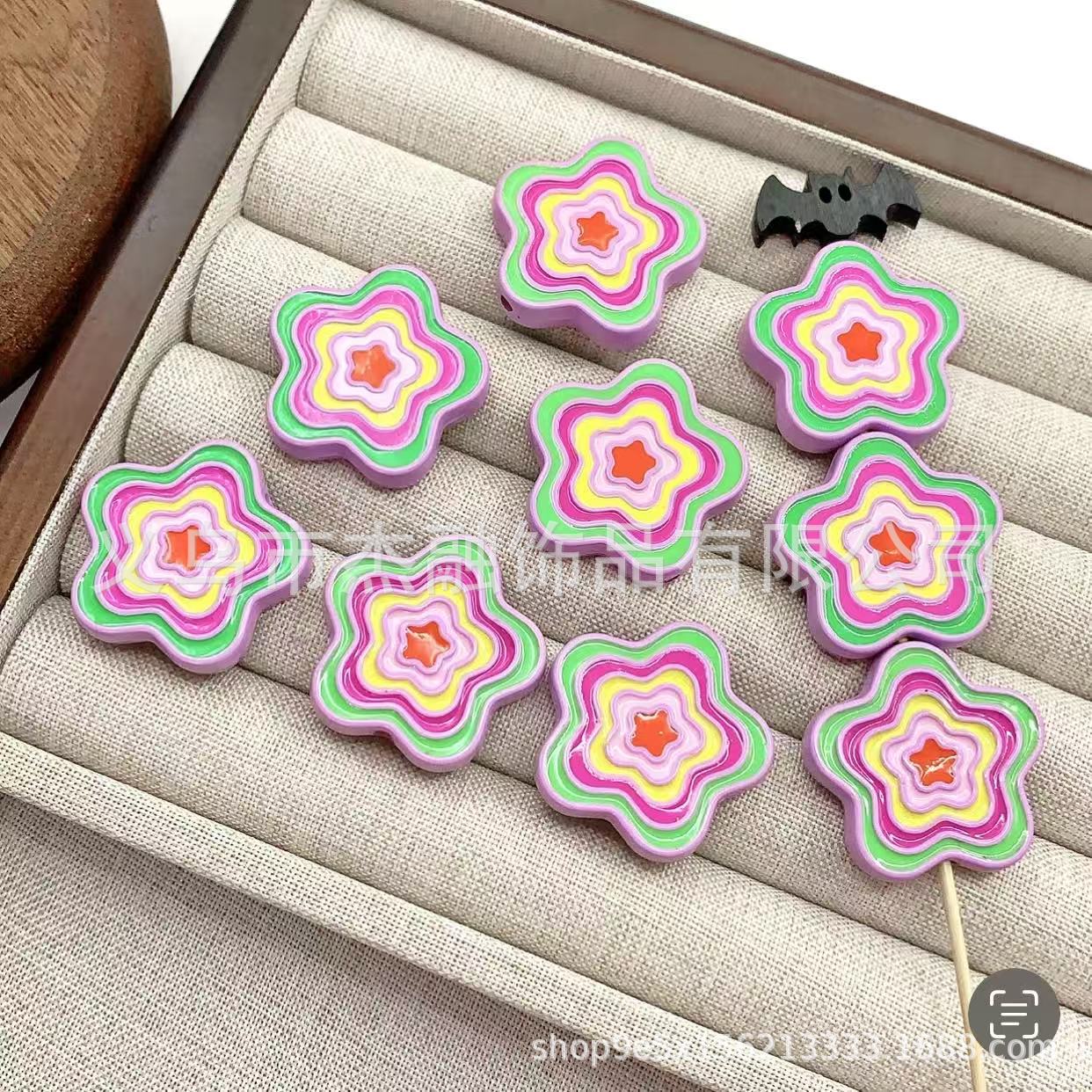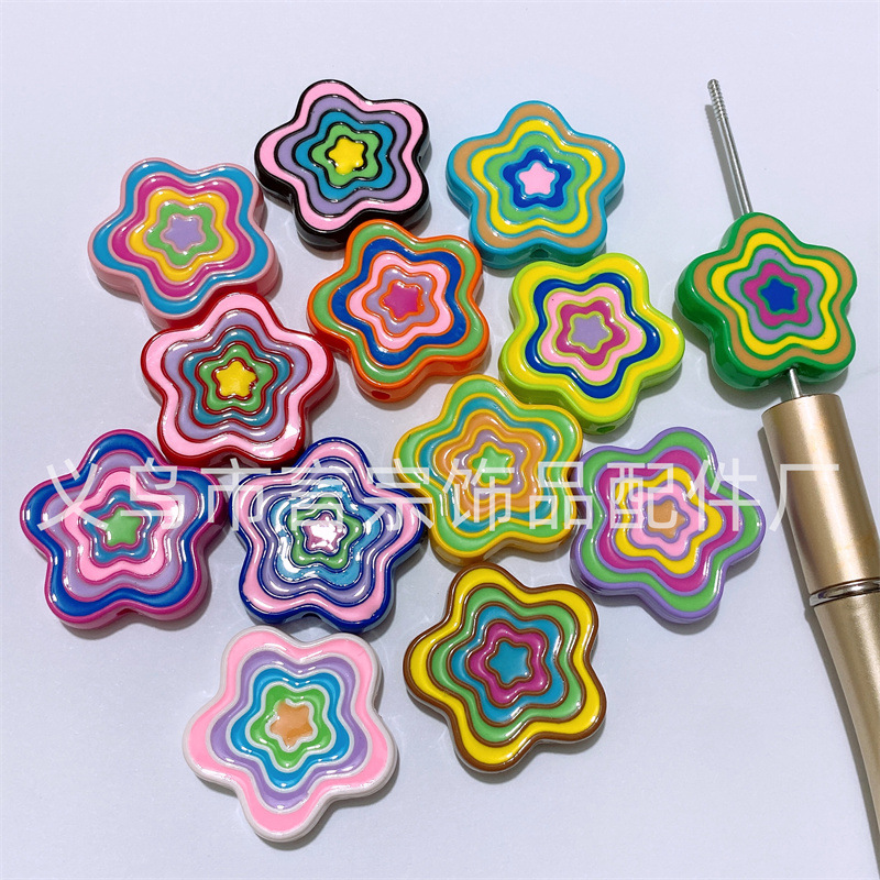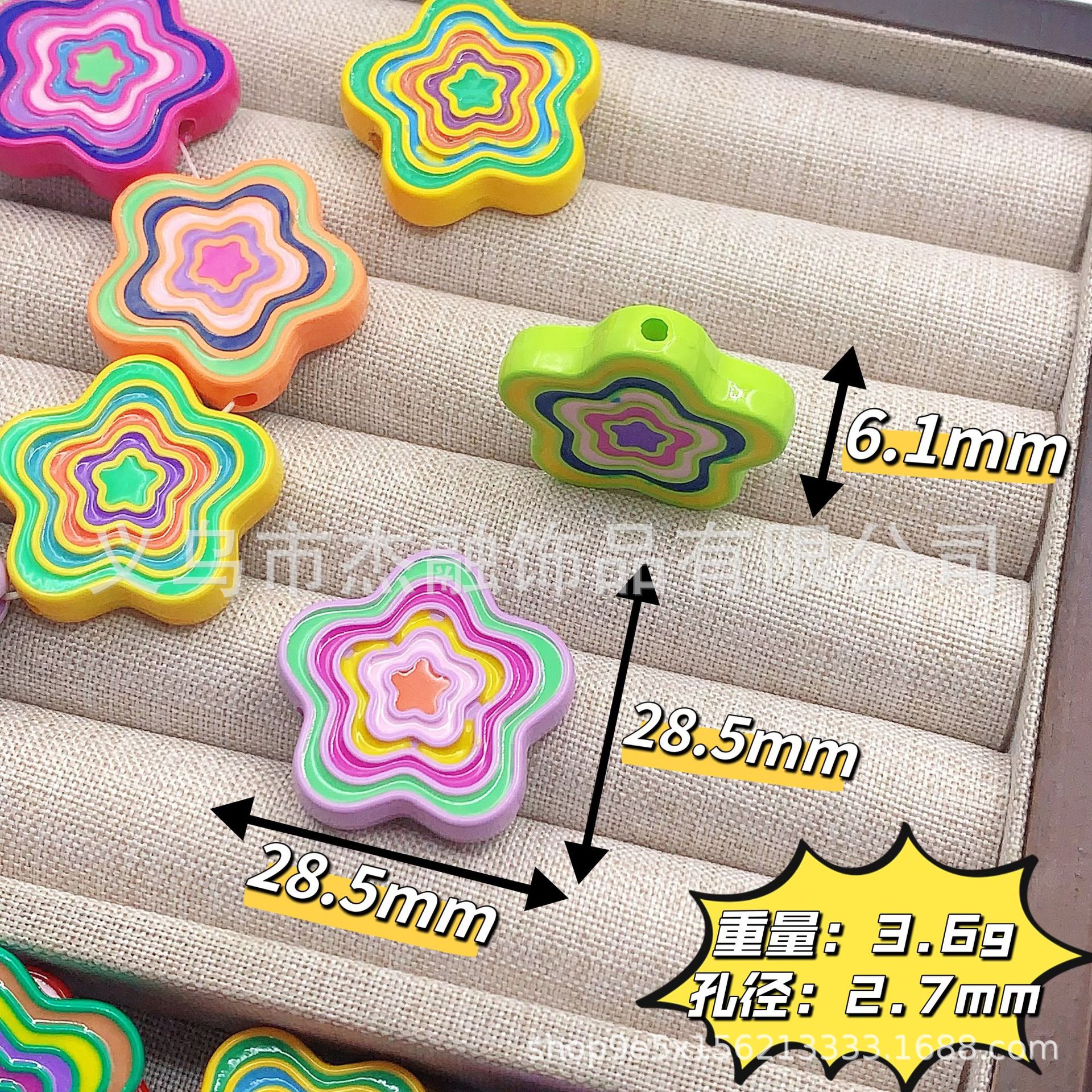 アクリル塗装両面滴油虹五角星縦穴ビーズdiy携帯チェーン車掛けビーズペン部品