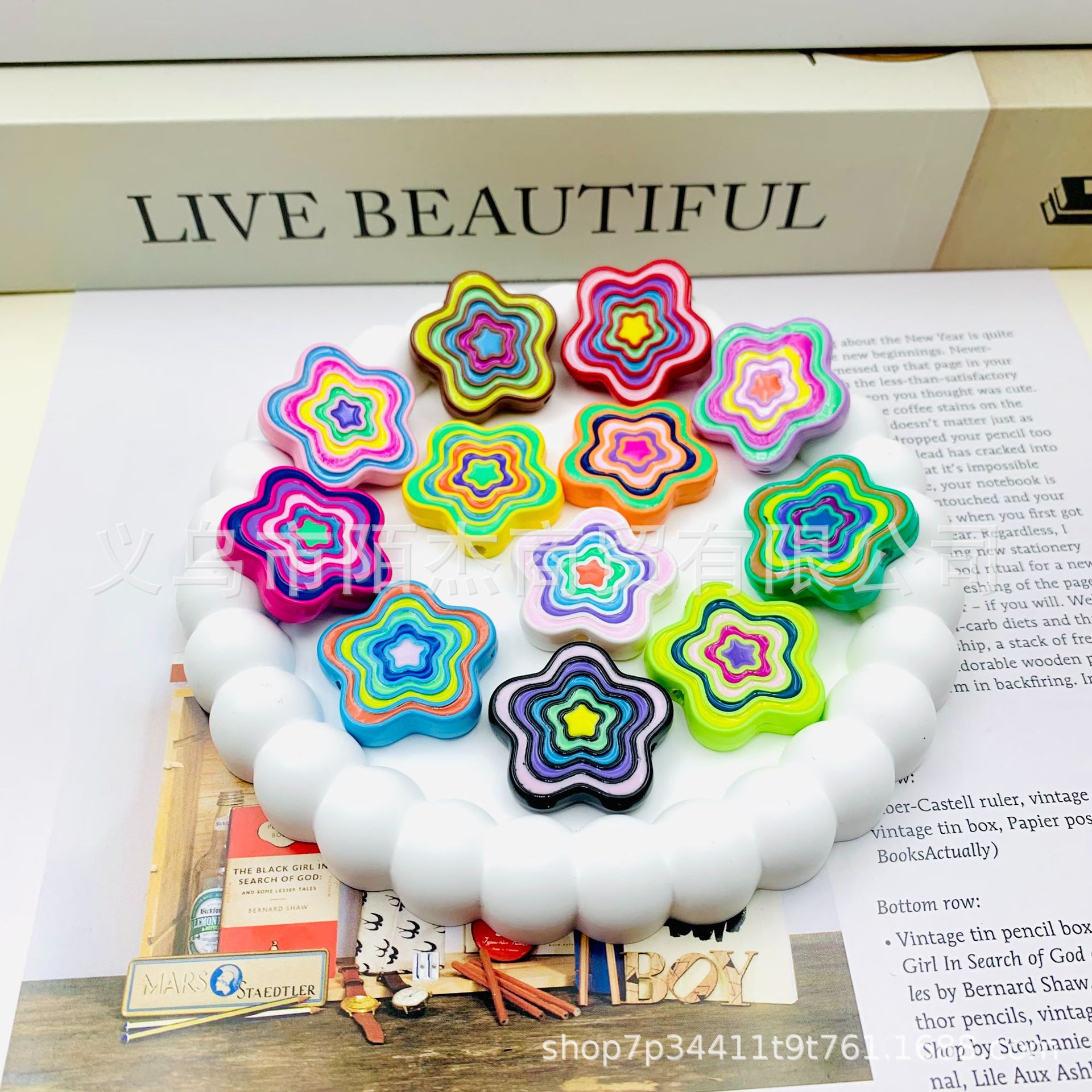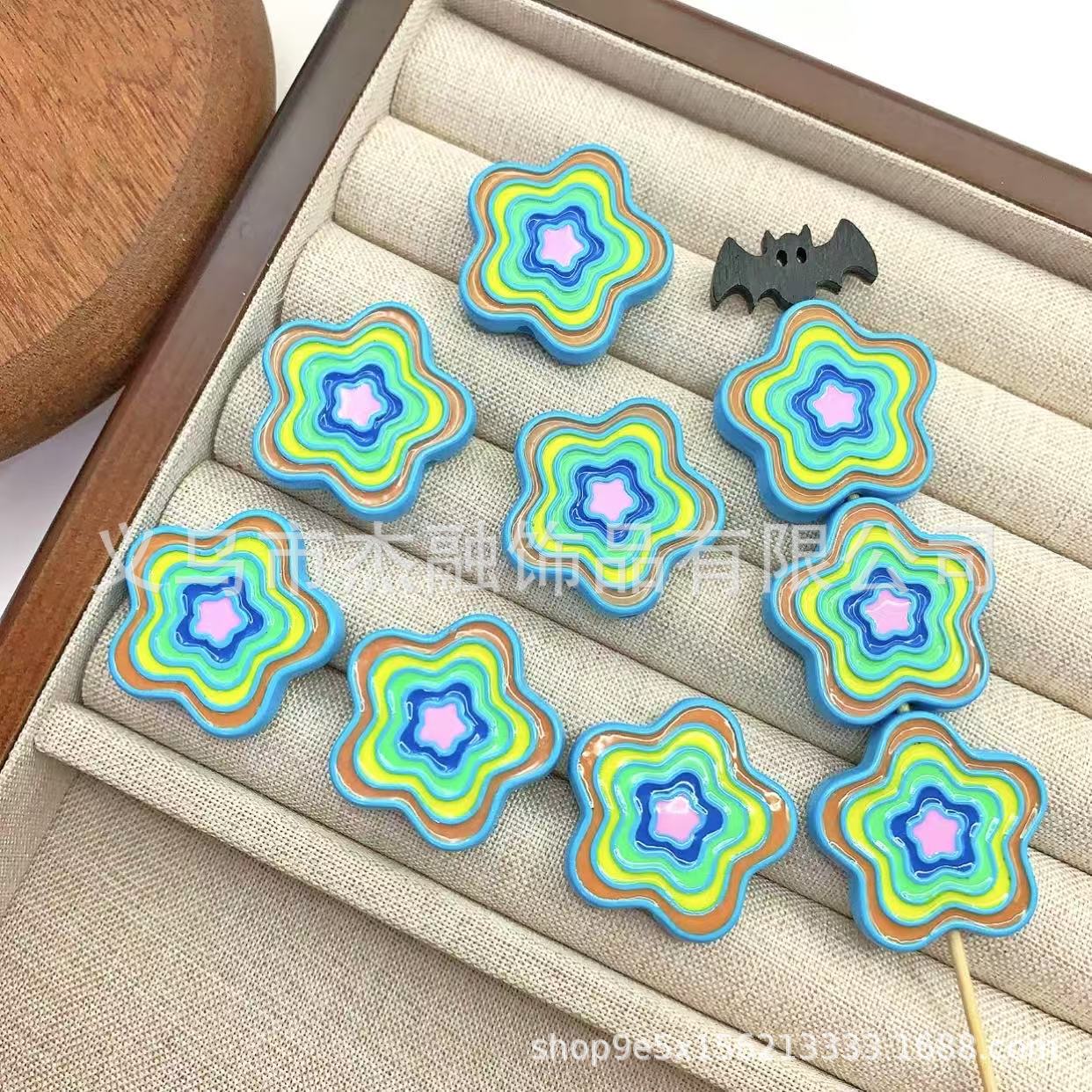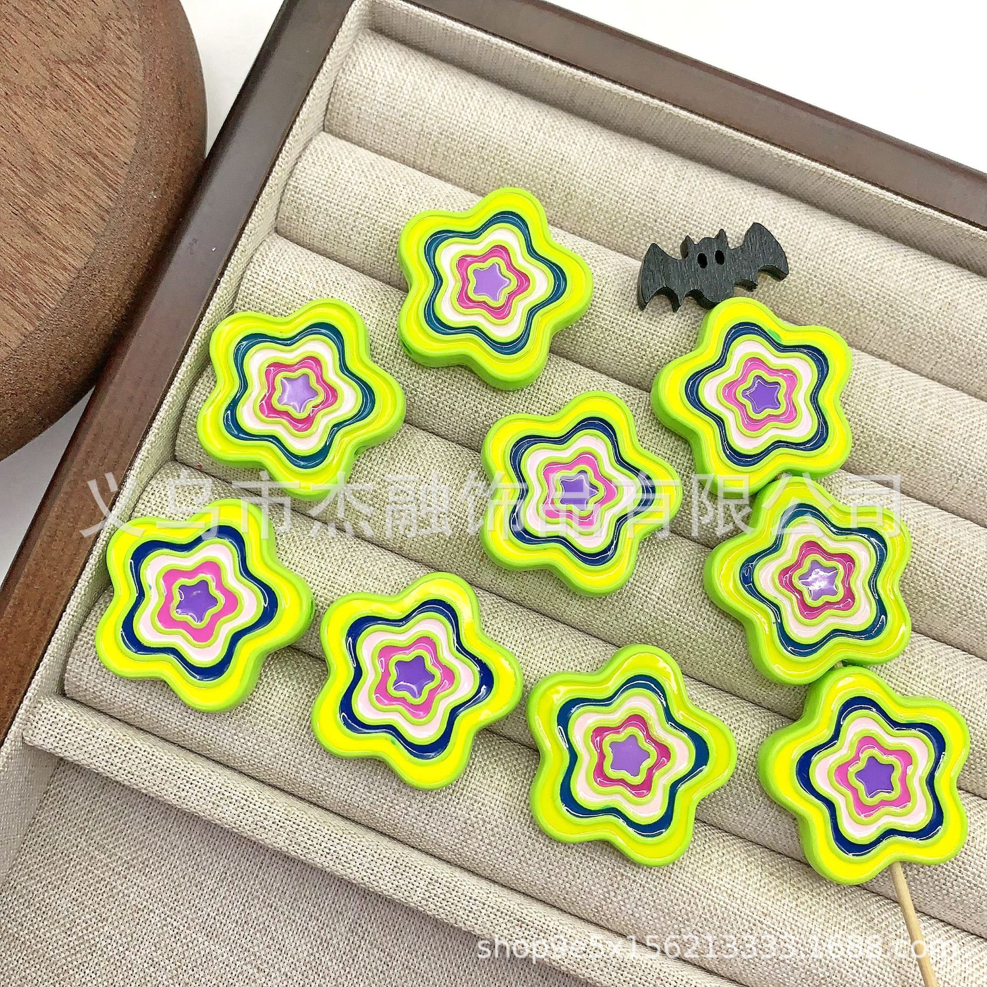 アクリル塗装両面滴油虹五角星縦穴ビーズdiy携帯チェーン車掛けビーズペン部品