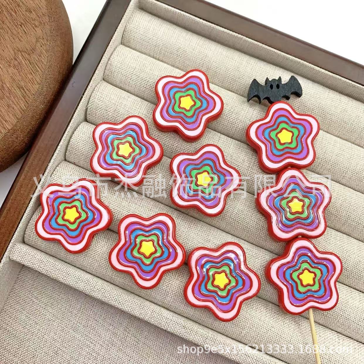 アクリルペイント両面オイルドリップレインボー五芒星垂直穴ビーズ diy 携帯電話チェーン車吊りビーズペンアクセサリー