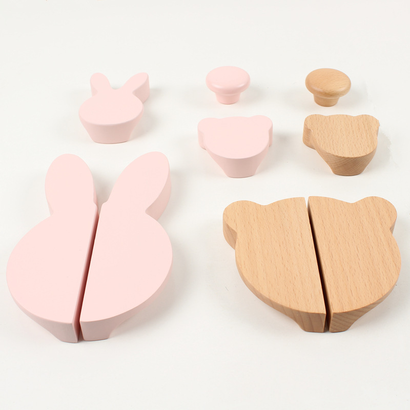 # かわいい子供部屋のワードローブキャビネットドア無垢材ログハンドル漫画動物ウサギの頭ミッキーベアの頭半円ハンドル