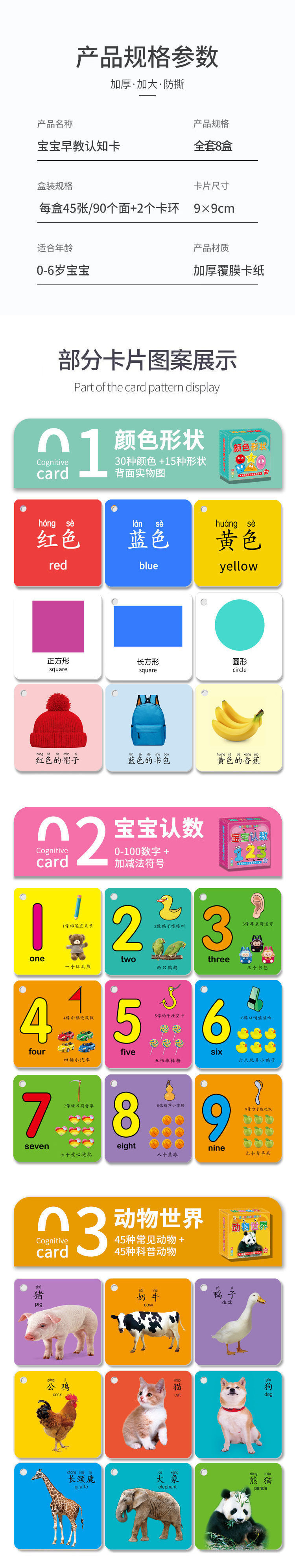 色と形の識字カード、幼稚園、未就学児、知識カード、小学1年生の早期教育啓発カード