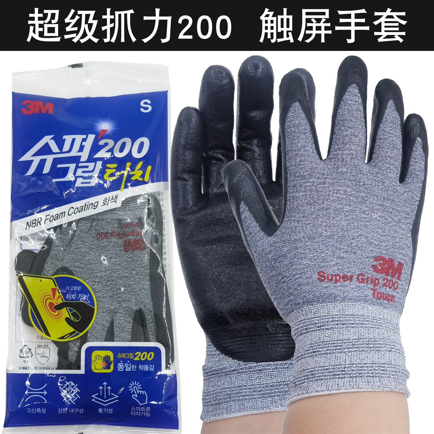 3M タッチスクリーン手袋、快適、滑り止め、耐摩耗性、通気性、ニトリルコーティング、浸漬ゴム、作業保護、携帯電話、工作機械のタッチスクリーン