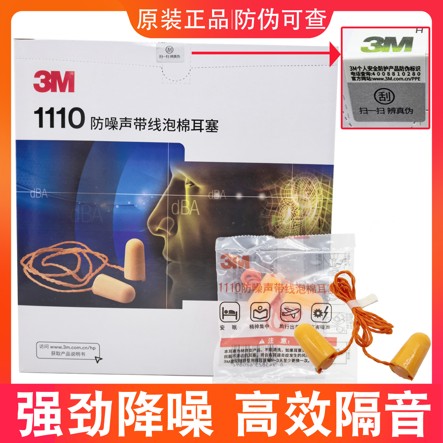 3m1110 ワイヤー付き騒音防止耳栓、工業用騒音低減、ミュート、工場作業場専用保護、干渉防止、超遮音