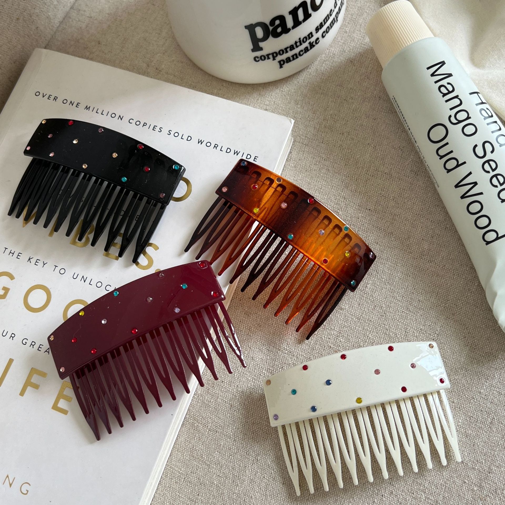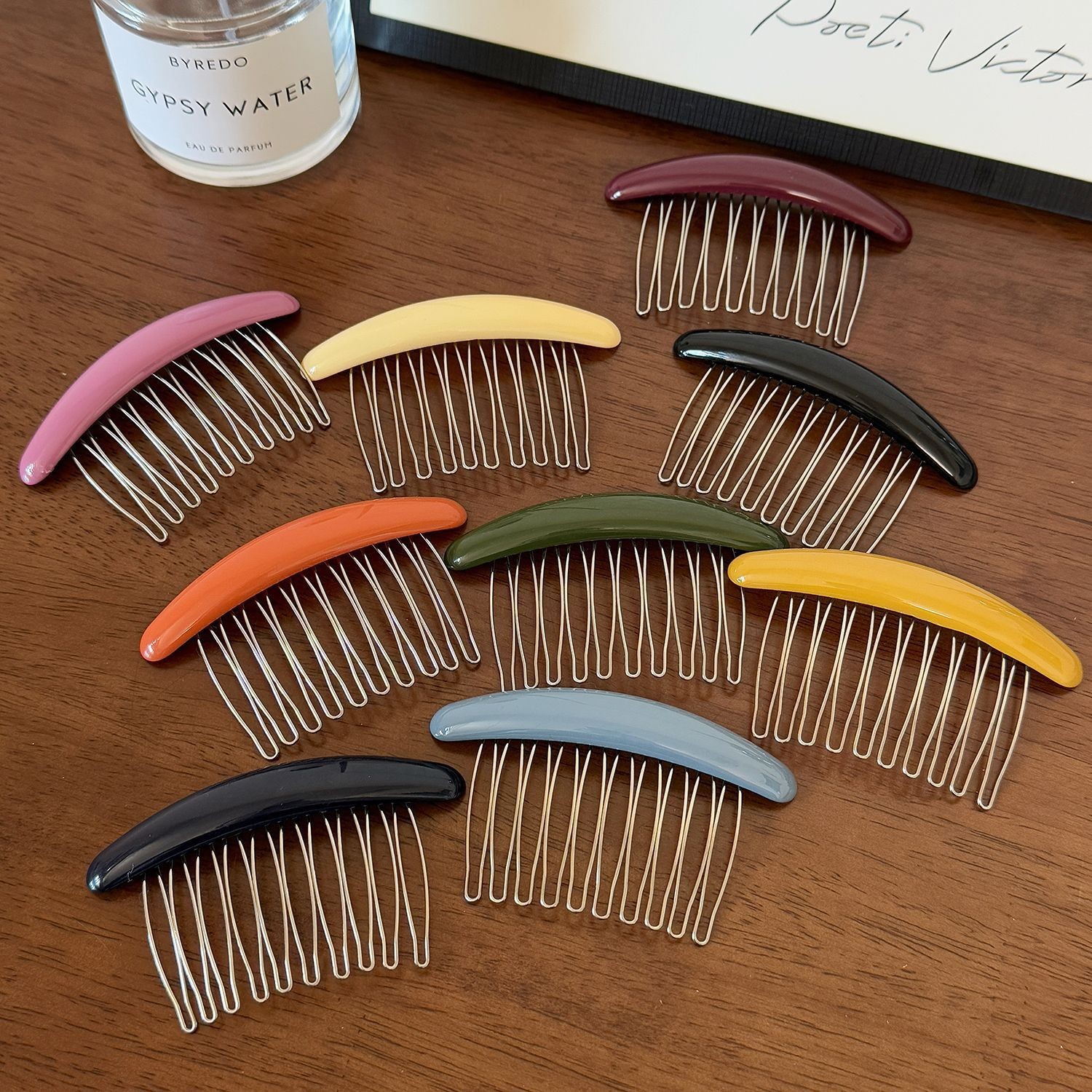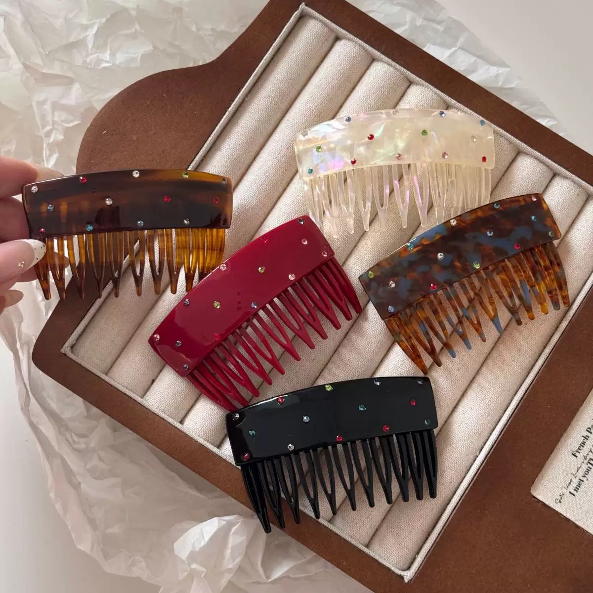 颜色 酒红字母H插梳,玳瑁咖字母H插梳,亮黑字母H插梳,黑色七齿插梳(醋酸版),豹纹七齿插梳(醋酸版),米白七齿插梳(醋酸版),安克拉红七齿插梳(醋酸版),深棕十齿插梳(磨砂版),磨砂黑十齿插梳磨砂版),紫红十齿插梳(磨砂版),韩版插梳-亮面酒红,韩版插梳-亮面咖色,韩版插梳-亮面黑色,韩版(彩钻)插梳-黑色,韩版(彩钻)插梳-咖色,韩版(彩钻)插梳-酒红,卡其方块插梳,千鸟格圆形插梳,咖色千鸟格插梳,酒红圆标字母插梳,黑色圆标字母插梳,玳瑁圆标字母插梳