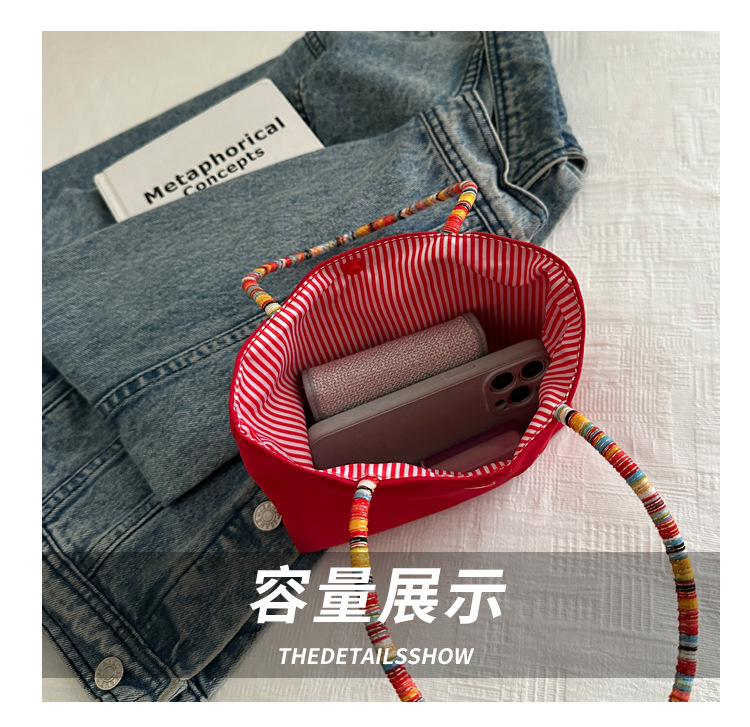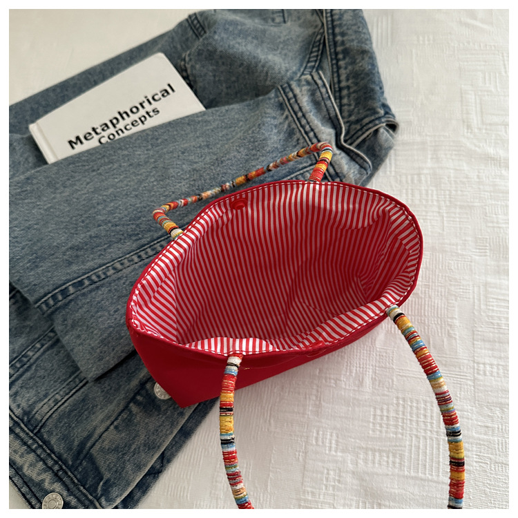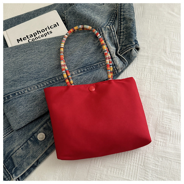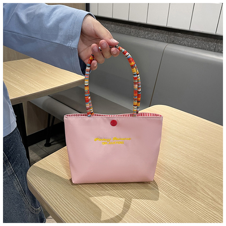 韓国キャンバスバッグニッチハンドバッグポータブルカラーロープポータブル目を引くコントラストカラータッチアップ実用的な外出ショルダーバッグ