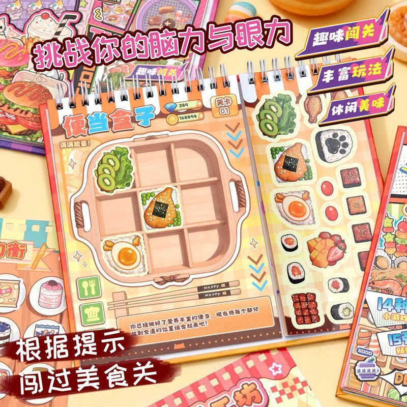 线圈游戏贴纸本美食治愈厨房系列趣味益智游戏挑战贴画本解压