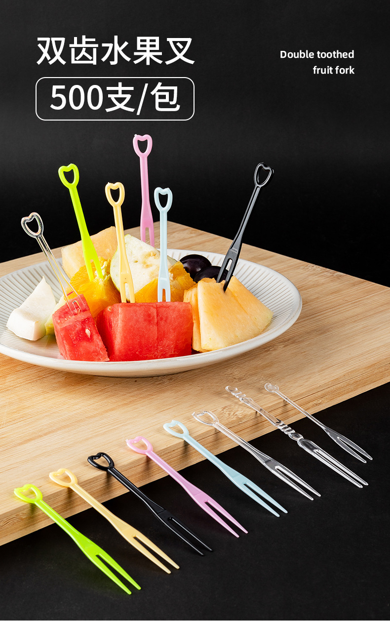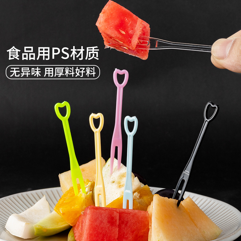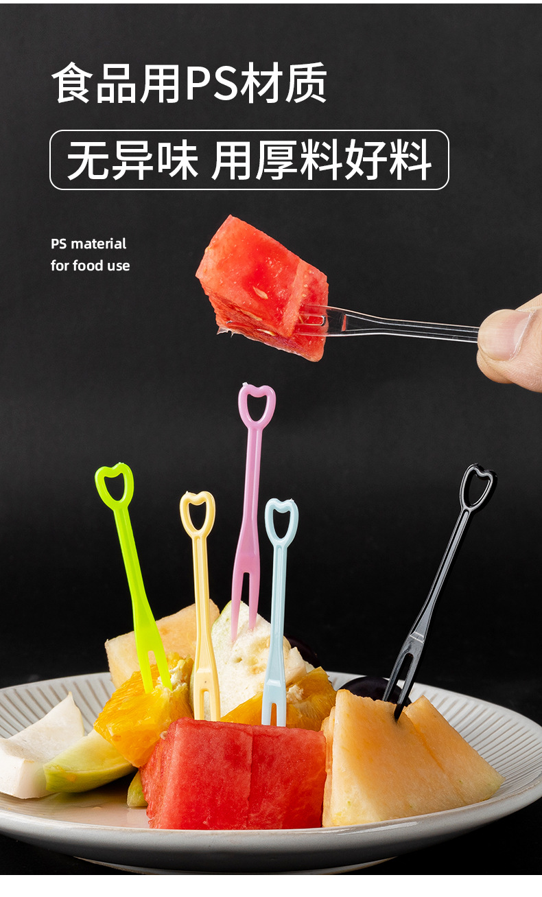 一次性水果叉家用独立装叉子塑料水果签透明创意爱心叉商超酒吧批