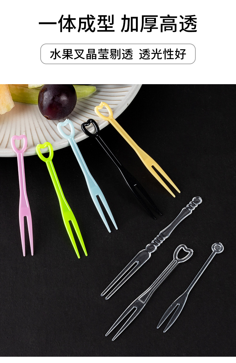 果物フォーク使い捨て包装プラスチック果物署名ケーキフォーク透明ktv商用小フォーク果物挿入