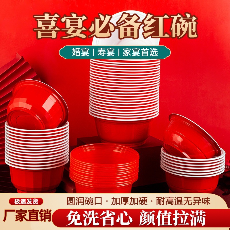 使い捨ての碗の食品級のプラスチックの赤い碗は会食します。