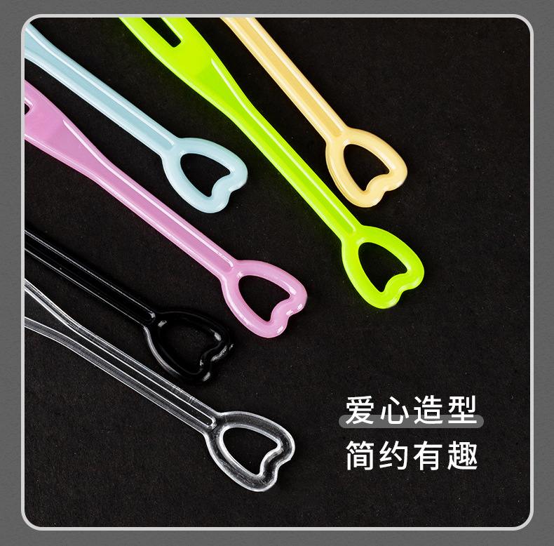 一次性水果叉子 厂家直卖 塑料透明彩色酒吧月饼心形果叉独立包装